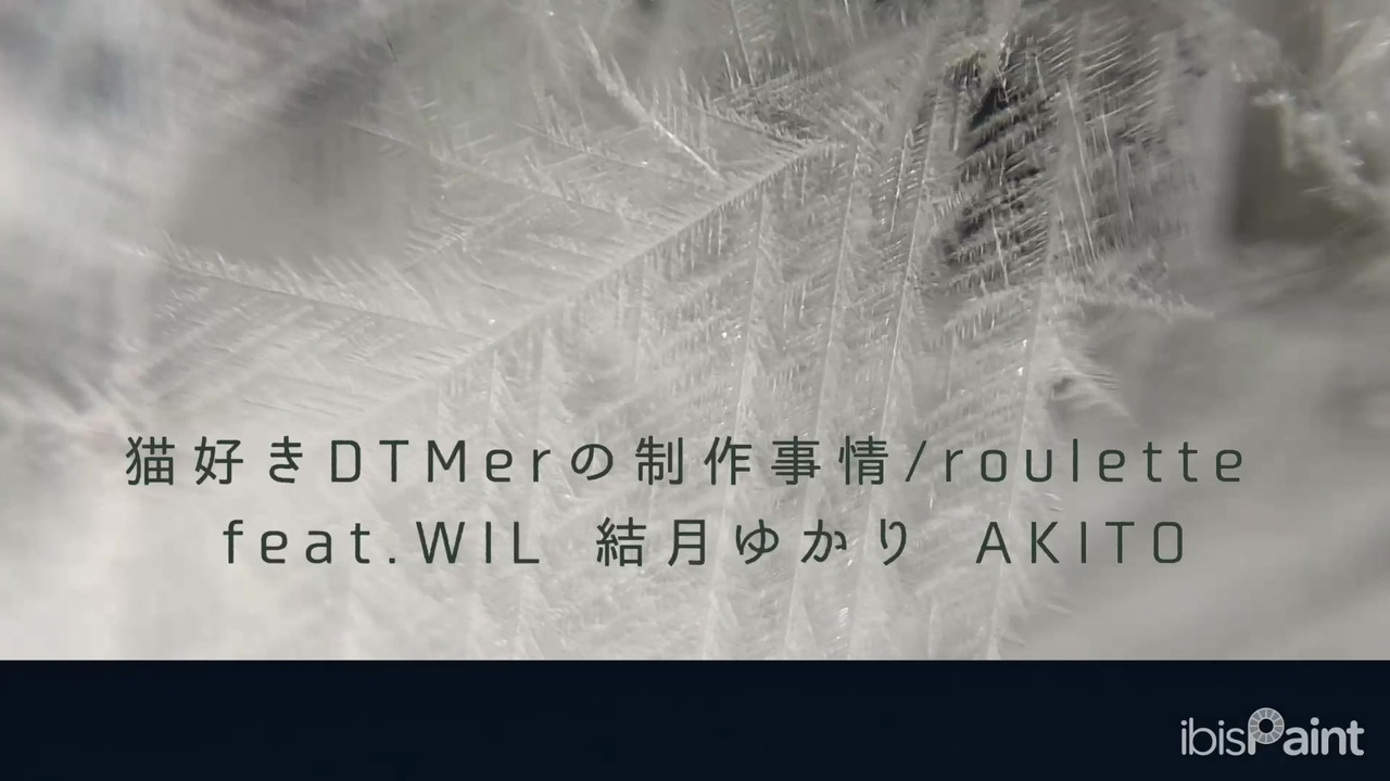 自己紹介曲投稿祭2<br><br>roulette(ルレット)です。<br>またしてもギリギリですが、自己紹介楽曲投稿参加します。自己紹介になってるのか?これ。いや、なってる。きっとそう。猫好きです。<br>今回は喧しい感じの曲になりました。<br>よろしくお願いします。<br><br>作詞作曲編曲動画:roulette<br>ボーカル:WIL(ZOLAproject)V6 & V3<br> 結月ゆかり V6 & 穏<br> AKITO<br>ギター、ベース、ドラム:ujam<br>percussion:GarageBand<br><br><br>猫好きDTMerの制作事情/roulette<br> feat.WIL 結月ゆかり AKITO<br><br>ボカロよく分からないツイ廃だからさ<br>軽率に決める投稿祭参加<br>そうでもしない限り完成しないから<br><br>刻々と締め切りが近付く最中<br>まるで進まない進捗<br>打ち込んだメロディ確認しながら<br>いつだってfalling asleep<br><br>イラスト作成アプリで テキスト入力<br>デフォルトのiMovie カメラロールの写真<br>出来上がるのはいつも動かない動画<br><br>歌詞は言葉が浮かばなくて書けない<br>書いてくれる方ありがとう!<br>全部懐かしい感じだねって言われる<br>それってどうなんだろう?<br><br>メロディ ハーモニーと共に歌って<br>オブリガート自由に描いて<br>自分らしさなんて分からなくても<br>メロディ ハーモニーと共に笑って<br>オブリガート自由に奏でて<br>好きだなぁって歌いながら作る<br><br>引きこもり系/野生のDTMer<br>猫が好き(重要)<br>