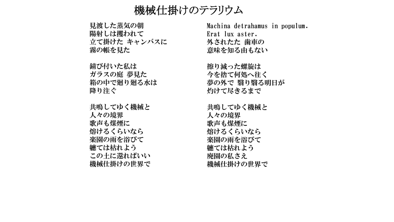 原曲:<a href="https://www.nicovideo.jp/watch/sm42789509" class="watch">sm42789509</a><br>作詞・作曲・編曲:Fty<br><a href="https://twitter.com/u0079fty" target="_blank" rel="noopener nofollow">https://twitter.com/u0079fty</a><br><a href="https://u0079fty.wordpress.com" target="_blank" rel="noopener nofollow">https://u0079fty.wordpress.com</a><br>イラスト:mer<br><a href="https://twitter.com/mer_rr12" target="_blank" rel="noopener nofollow">https://twitter.com/mer_rr12</a><br>CG・映像:302<br><a href="https://twitter.com/square302" target="_blank" rel="noopener nofollow">https://twitter.com/square302</a><br>歌:星界<br><br>整理番号:mei-027<br><br>無名歌唱祭2025:<a href="https://www.nicovideo.jp/mylist/79048408" target="_blank" rel="noopener">mylist/79048408</a>