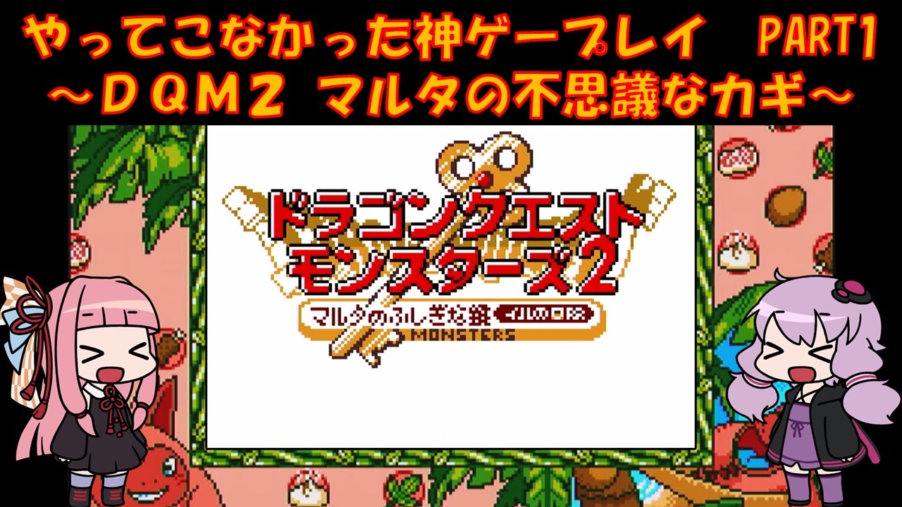 GBC ドラゴンクエストモンスターズ2 マルタの不思議なカギをプレイ<br>ゆかりさんはメジャーじゃないゲームをやる俺カッケー族だったのでドラクエをやったことがありませんでした(DSのⅤ以外)<br><br>茜:ウチが妹になるときが来るとはな<br>ゆ:あんまり聞かないフレーズですね<br><br>PART1:これ<br><br>各DQシリーズ再生リスト<br><a href="https://garage.nicovideo.jp/niconico-garage/video/series/390298" target="_blank" rel="noopener nofollow">https://garage.nicovideo.jp/niconico-garage/video/series/390298</a><br><br><br>動画内で使用させていただいた素材<br>【イラスト】<br>結月ゆかり→山栗鼠様:<a href="https://seiga.nicovideo.jp/seiga/im5354179" target="_blank" rel="noopener nofollow">https://seiga.nicovideo.jp/seiga/im5354179</a><br>琴葉茜→山栗鼠様:<a href="https://seiga.nicovideo.jp/seiga/im5342445" target="_blank" rel="noopener nofollow">https://seiga.nicovideo.jp/seiga/im5342445</a><br><br>【音声】<br>A.I.Voice:琴葉茜<br><a href="https://aivoice.jp/product/kotonoha/" target="_blank" rel="noopener nofollow">https://aivoice.jp/product/kotonoha/</a><br><br>A.I.Voice:結月ゆかり<br><a href="https://aivoice.jp/product/yukari/" target="_blank" rel="noopener nofollow">https://aivoice.jp/product/yukari/</a><br><br>この動画で利用している株式会社スクウェア・エニックスを代表とする共同著作者が権利を所有する著作物及びスギヤマ工房有限会社が権利を所有する楽曲の転載・配布は禁止いたします。<br>© ARMOR PROJECT/BIRD STUDIO/SQUARE ENIX All Rights Reserved.<br>© SUGIYAMA KOBO