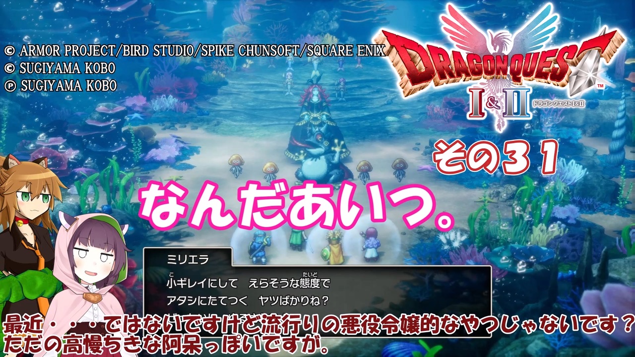 この動画はドラゴンクエストI&II<br>の実況プレイ動画となります。<br><br><br>難易度:いばらの道だぜ!<br><br>ネコ耳縛り?知らない子ですね・・・。<br><br><span style="font-size: 18px;"><strong>※シナリオに関わるネタバレあり。ご注意ください。</strong></span><br>(動画投稿ガイドラインより)<br><br>この動画で利用している株式会社スクウェア・エニックスを代表とする共同著作者が権利を所有する著作物及びスギヤマ工房有限会社が権利を所有する楽曲の転載・配布は禁止いたします。<br>© ARMOR PROJECT/BIRD STUDIO/SPIKE CHUNSOFT/SQUARE ENIX<br>© SUGIYAMA KOBO<br>℗ SUGIYAMA KOBO<br><br><a href="https://www.nicovideo.jp/watch/sm45684815" class="watch">sm45684815</a> ← 前 次 → <a href="https://www.nicovideo.jp/watch/sm45691273" class="watch">sm45691273</a><br>ドラクエ1→ <a href="https://www.nicovideo.jp/watch/sm45572733" class="watch">sm45572733</a><br>マイリスト → <a href="https://www.nicovideo.jp/mylist/77305494" target="_blank" rel="noopener">mylist/77305494</a><br>その1リスト → <a href="https://www.nicovideo.jp/mylist/58364125" target="_blank" rel="noopener">mylist/58364125</a><br><br>※使用Voice(及び配役)<br>VOICEVOX:春日部つむぎ(ネコ耳) 東北きりたん(きりたん)<br>立ち絵:ネコ耳(470/43様より頂きました)<br>Voiceroid:東北きりたん(立ち絵:このりEX様作 東北きりたん立ち絵素材5 <a href="https://seiga.nicovideo.jp/seiga/im10819054" target="_blank" rel="noopener">im10819054</a>)<br> 琴葉茜(立ち絵:ぴぴ様作 琴葉の茜ちゃん立ち絵 <a href="https://seiga.nicovideo.jp/seiga/im11484646" target="_blank" rel="noopener">im11484646</a>)<br> 琴葉葵(立ち絵:ぴぴ様作 琴葉の葵ちゃん立ち絵 <a href="https://seiga.nicovideo.jp/seiga/im11483449" target="_blank" rel="noopener">im11483449</a>)