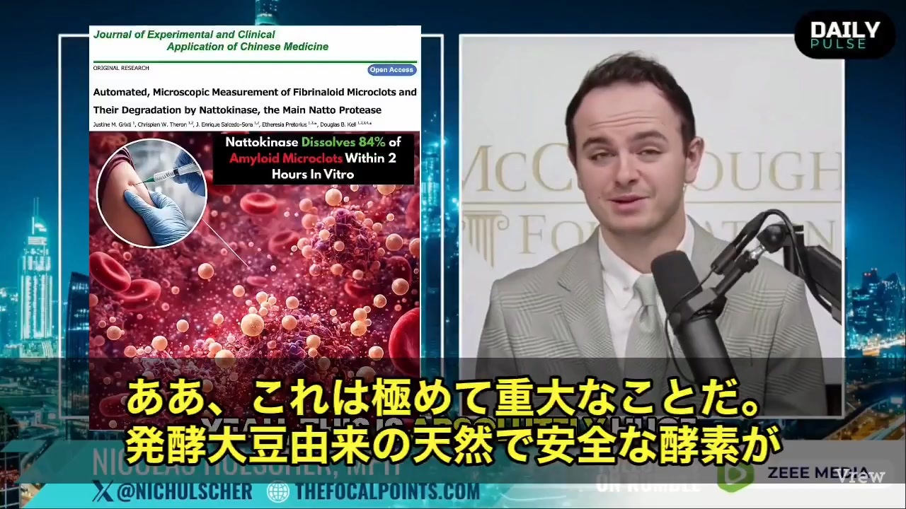 元の動画 → <a href="https://x.com/i/status/1993350684159402031" target="_blank" rel="noopener nofollow">https://x.com/i/status/1993350684159402031</a><br>衝撃の新データが入ってきています。‼️<br>今回話題になっているのは、あのナットウキナーゼの“実験結果”です。<br><br>最新の検証で、なんとアミロイド微小血栓の84%を分解したと報告されているんです…<br><br>しかも、問題になっているスパイクたんぱく質だけじゃなく、体内で形成されてしまった“微小血栓そのもの”にも作用しているとされています。<br><br>ここが専門家たちの耳目を集めているポイントで、最近の研究ではワクチン接種者を検査した全員からアミロイド微小血栓が確認されたという報告があり、医療現場でも困惑が広がっています。<br><br>そこに登場したのが、このナットウキナーゼ。<br><br>トリガーとされるスパイク、そして形成された異常血栓……<br><br>両方を分解してしまうという実験結果に、研究者たちの間でも「何が起きているのか」と関心が集まっている状況です💦<br><br>この動きがどこまで深掘りされていくのか、今後さらにが続くとみられています。 11月26日<br><br><br><br><br><a href="https://x.com/w2skwn3" target="_blank" rel="noopener nofollow">https://x.com/w2skwn3</a><br>トッポ<br><br>@w2skwn3<br>趣味は国際政治ですが大学では医学を学びました。テレビの嘘報道にはうんざりしてツイッターで情報交換したいです。<br>