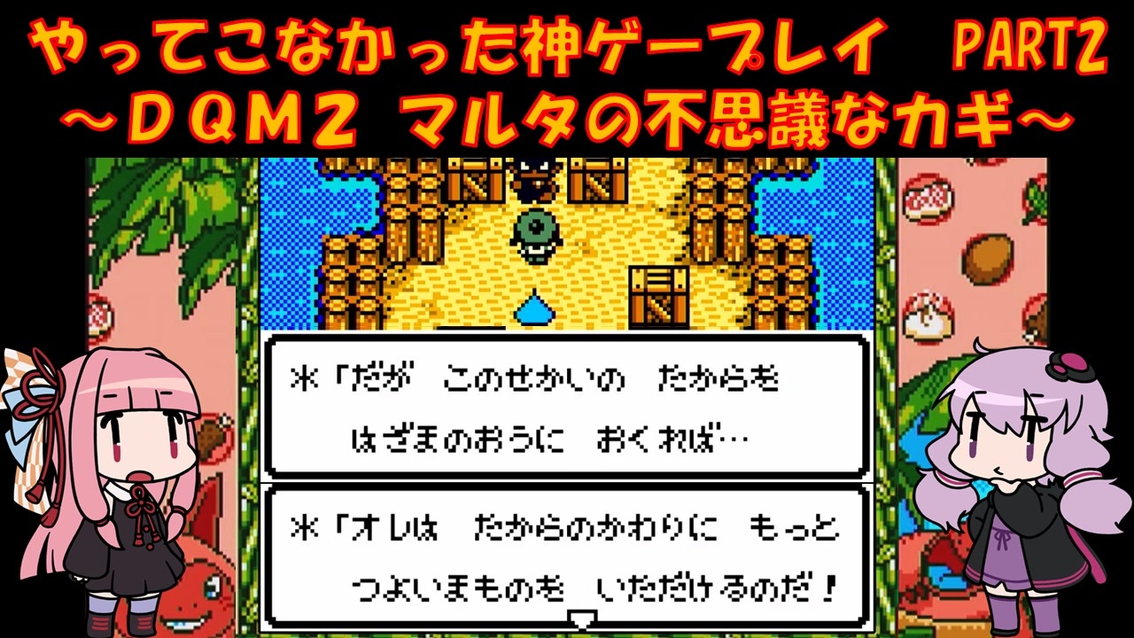 GBC ドラゴンクエストモンスターズ2 マルタの不思議なカギをプレイ<br>ゆかりさんはメジャーじゃないゲームをやる俺カッケー族だったのでドラクエをやったことがありませんでした(DSのⅤ以外)<br><br>茜:なんか知らん王がまものつかいを言葉巧みに操ってるみたいやな<br>ゆ:言葉巧みにというか欲望に付け込んでですかね<br><br>PART1:<a href="https://www.nicovideo.jp/watch/sm45684209" target="_blank" rel="noopener nofollow">https://www.nicovideo.jp/watch/sm45684209</a><br><br>各DQシリーズ再生リスト<br><a href="https://garage.nicovideo.jp/niconico-garage/video/series/390298" target="_blank" rel="noopener nofollow">https://garage.nicovideo.jp/niconico-garage/video/series/390298</a><br><br><br>動画内で使用させていただいた素材<br>【イラスト】<br>結月ゆかり→山栗鼠様:<a href="https://seiga.nicovideo.jp/seiga/im5354179" target="_blank" rel="noopener nofollow">https://seiga.nicovideo.jp/seiga/im5354179</a><br>琴葉茜→山栗鼠様:<a href="https://seiga.nicovideo.jp/seiga/im5342445" target="_blank" rel="noopener nofollow">https://seiga.nicovideo.jp/seiga/im5342445</a><br><br>【音声】<br>A.I.Voice:琴葉茜<br><a href="https://aivoice.jp/product/kotonoha/" target="_blank" rel="noopener nofollow">https://aivoice.jp/product/kotonoha/</a><br><br>A.I.Voice:結月ゆかり<br><a href="https://aivoice.jp/product/yukari/" target="_blank" rel="noopener nofollow">https://aivoice.jp/product/yukari/</a><br><br>この動画で利用している株式会社スクウェア・エニックスを代表とする共同著作者が権利を所有する著作物及びスギヤマ工房有限会社が権利を所有する楽曲の転載・配布は禁止いたします。<br>© ARMOR PROJECT/BIRD STUDIO/SQUARE ENIX All Rights Reserved.<br>© SUGIYAMA KOBO