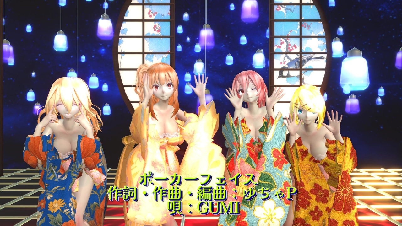 ♪楽曲<br>ポーカーフェイス / ゆちゃP feat.GUMI <a href="https://www.nicovideo.jp/watch/sm12894209" class="watch">sm12894209</a><br><br>♪モーション<br>【MMD-DMC3】ポーカーフェイス あひる@anatroccolo様 <a href="https://www.nicovideo.jp/watch/sm16502322" class="watch">sm16502322</a><br>カメラ・表情・リップ:紫音美菜<br><br>♪モデル<br>Tda式 重音テト kimono style 改変 柳未亜<br>Tda式改変 柳未亜 kimono style 改変 柳未亜<br>Tda式改変 鏡音リン Kimono Style 改変 柳未亜<br>Tda式改変 神宮寺彩音 kimono style 改変 柳未亜<br><br>♪ステージ<br>ランプステージ Ai様 <a href="https://seiga.nicovideo.jp/seiga/im12345678" target="_blank" rel="noopener">im12345678</a><br><br>♪シェーダー<br>サンドマン様 sdPBR480 <a href="https://www.nicovideo.jp/watch/sm43948524" class="watch">sm43948524</a><br><br>♪エフェクト<br>そぼろ様 <a href="https://www.nicovideo.jp/watch/sm19123817" class="watch">sm19123817</a> / <a href="https://seiga.nicovideo.jp/seiga/im3061709" target="_blank" rel="noopener">im3061709</a> / <a href="https://www.nicovideo.jp/watch/sm16087751" class="watch">sm16087751</a><br>おたもん様 <a href="https://seiga.nicovideo.jp/seiga/im1763840" target="_blank" rel="noopener">im1763840</a> / <a href="https://seiga.nicovideo.jp/seiga/im1561862" target="_blank" rel="noopener">im1561862</a><br>ビームマンP <a href="https://www.nicovideo.jp/watch/sm13465497" class="watch">sm13465497</a><br><br>♪ツール<br>VmdSizing_5.01.08_64bit <a href="https://seiga.nicovideo.jp/seiga/im9755721" target="_blank" rel="noopener">im9755721</a><br>3Dミクを躍らせるツール <a href="https://www.nicovideo.jp/watch/sm2420025" class="watch">sm2420025</a><br>MikuMikuPlus v1.7.1 <a href="https://www.nicovideo.jp/watch/sm34761249" class="watch">sm34761249</a><br>エフェクトファイル読込 <a href="https://www.nicovideo.jp/watch/sm12149815" class="watch">sm12149815</a><br>Wondershare Filmora 14<br><br>---<br>動画を見て下さり有難う御座います。<br>Thank you for watching the video.<br>영상을 봐주셔서 감사합니다.<br>感谢您观看视频。<br><br>転載禁止 / This video may not be reproduced<br>이 동영상은 무단 전재를 금합니다.<br>本视频不得复制<br>
