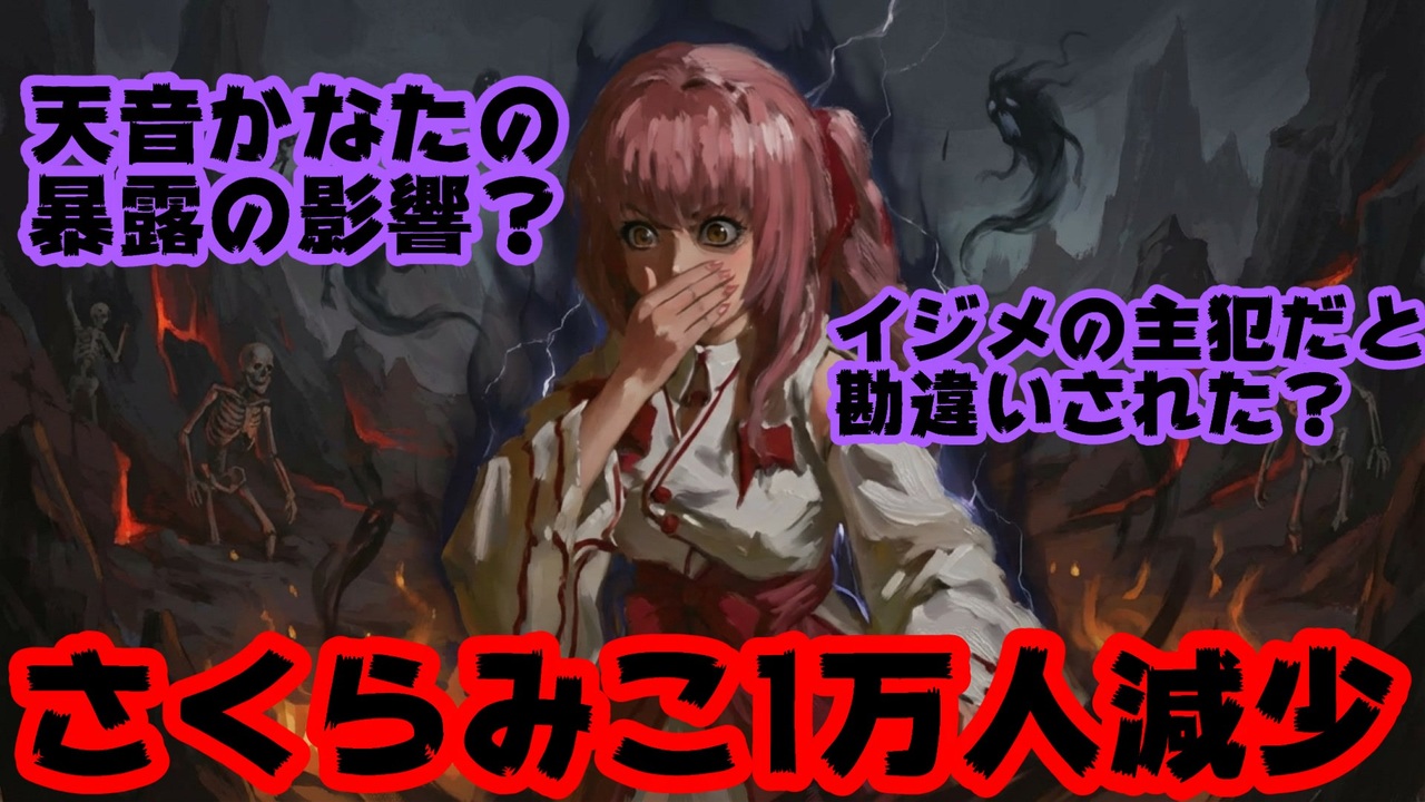2025年12月3日、ホロライブのさくらみこさんのチャンネル登録者数が1万人減少表記となりました。<br><br>引用<br><a href="https://playboard.co/en/channel/UC-hM6YJuNYVAmUWxeIr9FeA/subscribers" target="_blank" rel="noopener nofollow">https://playboard.co/en/channel/UC-hM6YJuNYVAmUWxeIr9FeA/subscribers</a><br><br>Youtube <a href="https://www.youtube.com/@V_Virgin_Mary" target="_blank" rel="noopener nofollow">https://www.youtube.com/@V_Virgin_Mary</a><br>twitter <a href="https://twitter.com/V_Virgin_Mary" target="_blank" rel="noopener nofollow">https://twitter.com/V_Virgin_Mary</a><br><br>使用素材 高品質なフリー動画素材 - Pixabay <a href="https://pixabay.com/ja/videos" target="_blank" rel="noopener nofollow">https://pixabay.com/ja/videos</a><br><br>#切り抜き #切り抜き動画 #ゆっくり解説 #VOICEROID #VOICEROID解説 #vtuber #vtubers #バーチャル #ブイチューバー
