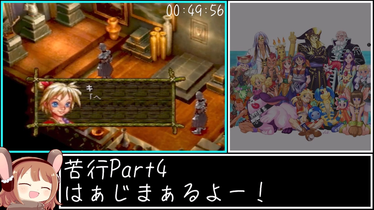 「隊長!12月になったでありますな!」<br>「あ、朝晩はもうスッカリ冬の冷え込みなんだな」<br>「昼間は日が照っていればまだ暖かいでありますな!」<br>「寒かったり暖かかったり、どっちかにして欲しいんだな…」<br>「この動画シリーズを見る時は、暖かい時に見るべきでありますな!」<br>「その方がまったり動画を楽しめるから…なんだな?」<br>「概要欄で毎度懲りずに隊長が激寒コントを繰り広げるからでありますな(笑)」<br>「それはお前も悪いんだな!!!!!ふん!!!!!!」<br>「デコターーーーーーーーン!!!!!!!!!!!!」<br><br>【このシリーズのリンク】<br>Part1:<a href="https://www.nicovideo.jp/watch/sm45629580" class="watch">sm45629580</a><br>前:<a href="https://www.nicovideo.jp/watch/sm45674970" class="watch">sm45674970</a><br>次:<a href="https://www.nicovideo.jp/watch/sm45722093" class="watch">sm45722093</a><br>マイリスト:<a href="https://www.nicovideo.jp/mylist/79017664" target="_blank" rel="noopener">mylist/79017664</a><br><br>【クロノシリーズRTAマイリスト】<br>クロスGoodEnding:<a href="https://www.nicovideo.jp/mylist/77599763" target="_blank" rel="noopener">mylist/77599763</a><br>クロスAllCharacters:<a href="https://www.nicovideo.jp/mylist/75145088" target="_blank" rel="noopener">mylist/75145088</a><br>トリガーAllEndings:<a href="https://www.nicovideo.jp/mylist/78090522" target="_blank" rel="noopener">mylist/78090522</a><br><br>【Twitch】<br><a href="https://www.twitch.tv/tomo_rta" target="_blank" rel="noopener nofollow">https://www.twitch.tv/tomo_rta</a><br><br>【Twitter】<br><a href="https://x.com/Tomo_RTA" target="_blank" rel="noopener nofollow">https://x.com/Tomo_RTA</a><br><br>【固定敵行動パターン表】<br><a href="https://drive.google.com/file/d/1hju4hcsEMiq0z5-mkneWtSzS8pygNjj2/view?usp=drive_link" target="_blank" rel="noopener nofollow">https://drive.google.com/file/d/1hju4hcsEMiq0z5-mkneWtSzS8pygNjj2/view?usp=drive_link</a><br><br>【戦闘における基礎知識】<br><a href="https://drive.google.com/file/d/1uUlmS8Fk4ungxdywBPpJXOTwvDb5Jdbh/view?usp=drive_link" target="_blank" rel="noopener nofollow">https://drive.google.com/file/d/1uUlmS8Fk4ungxdywBPpJXOTwvDb5Jdbh/view?usp=drive_link</a><br><br>【権利】<br>CHRONO CROSS<br>© SQUARE ENIX CO., LTD. All Rights Reserved.<br>Character Design: © SQUARE ENIX CO., LTD. /© NOBUTERU YUUKI All Rights Reserved.<br>RADICAL DREAMERS<br>© SQUARE ENIX CO., LTD. All Rights Reserved.