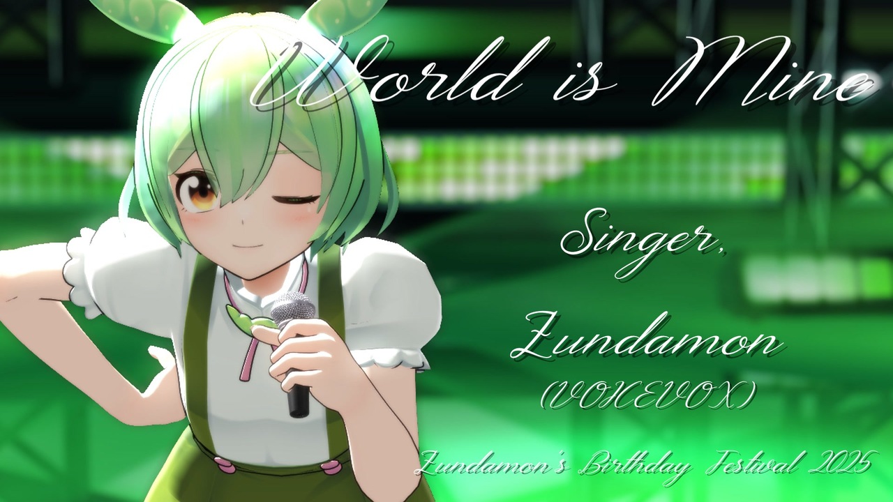 ずんだもん誕生祭2025 <br><a href="https://blog.nicovideo.jp/niconews/262786.html" target="_blank" rel="noopener nofollow">https://blog.nicovideo.jp/niconews/262786.html</a> <br><br>12月5日はずんだもんの誕生日!オメデト(*ˊᵕˋ*).•*¨*•♪ <br>ryo(supercell)様の「ワールドイズマイン」をカバーさせていただきました。 ฅ^•ω•^ฅ <br><br>この曲を知ったのはフォートナイトです...σ( ̄∇ ̄; ) <br><br><br>オリジナル「ryo」様 <br><a href="https://www.nicovideo.jp/watch/sm3504435" target="_blank" rel="noopener nofollow">https://www.nicovideo.jp/watch/sm3504435</a> <br><br>UST「Fantailed」様 ※かなり調整しました。音ズレしてるかも... <br><a href="https://www.youtube.com/watch?v=PxUJXw6SX2g" target="_blank" rel="noopener nofollow">https://www.youtube.com/watch?v=PxUJXw6SX2g</a> <br><br>MMDモデル「quappael」様 <br><a href="https://seiga.nicovideo.jp/seiga/im11385101" target="_blank" rel="noopener nofollow">https://seiga.nicovideo.jp/seiga/im11385101</a> <br><br>ステージ「ムムム」様 <br><a href="https://seiga.nicovideo.jp/seiga/im11650316" target="_blank" rel="noopener nofollow">https://seiga.nicovideo.jp/seiga/im11650316</a> <br><br>ダンス「Rick」様 <br><a href="https://www.nicovideo.jp/watch/sm18724837" target="_blank" rel="noopener nofollow">https://www.nicovideo.jp/watch/sm18724837</a> <br><br>カメラ1「かつサンド」様 <br><a href="https://www.nicovideo.jp/watch/sm43196449" target="_blank" rel="noopener nofollow">https://www.nicovideo.jp/watch/sm43196449</a> <br><br>カメラ2「猫型dog」様 <br><a href="http://www.nicovideo.jp/watch/sm31509794" target="_blank" rel="noopener nofollow">http://www.nicovideo.jp/watch/sm31509794</a> <br><br>MMEffect <br>角砂糖様 <br>そぼろ様 <br>akeru様 <br>針金P様 <br><br><br>歌 <br>VOICEVOX:ずんだもん <br>※ずんだもん(連続音)ブレス、シャウト