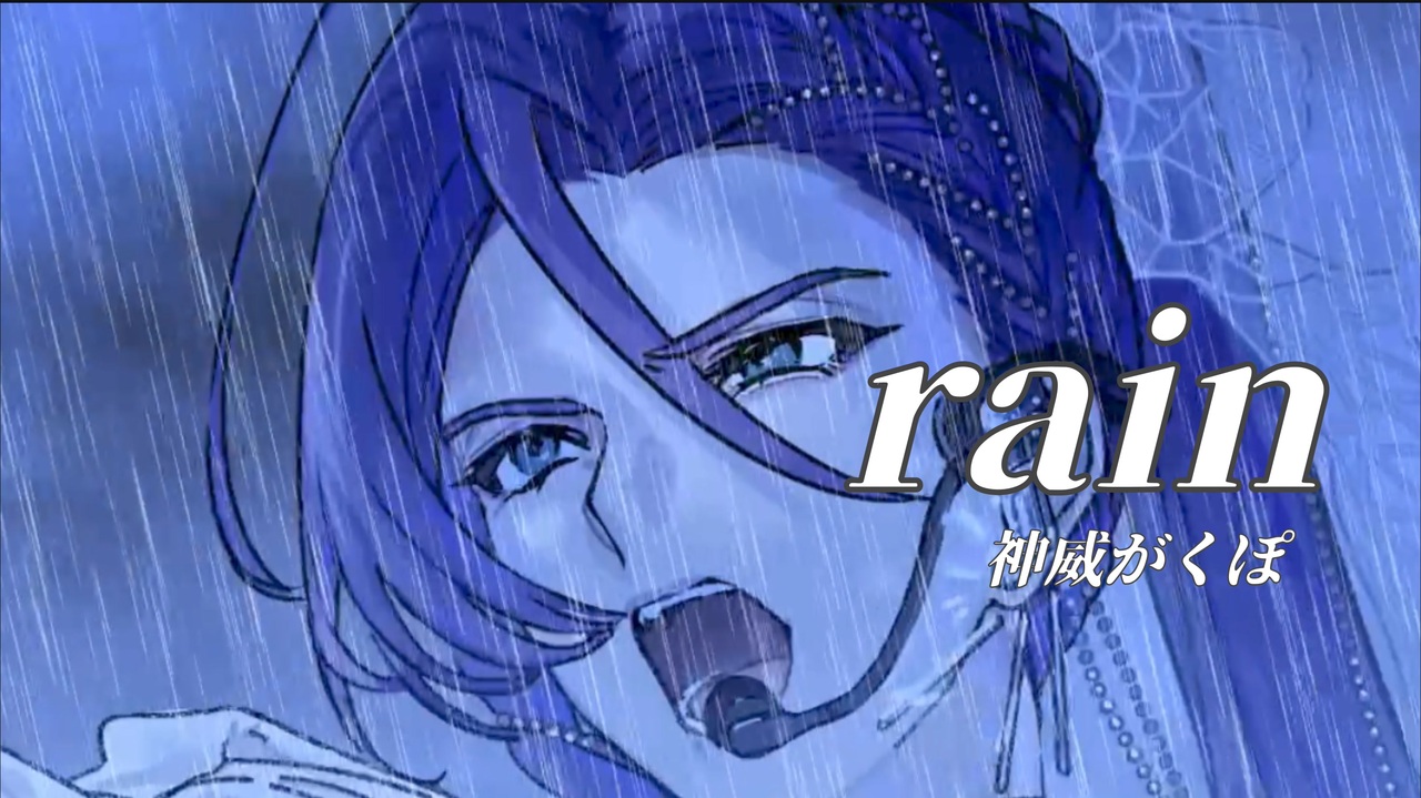 <span style="color: #999999; font-size: 18px;"><strong><i>本作品は、制作者の意図により歌詞の記載はございません。</i></strong></span><br><br><strong>今作品における<br>詩の世界は<br>来春まで続く<br>『MOON』という名の<br>物語の謎を解く、<br>大きな鍵になっている<br><br>物語の始まりとして<br>まずは"文字"からではなく<br>"音"でこの『MOON』の世界を感じ<br><br>この物語の中にある謎を<br>そしてその答えを<br>導きだしてほしい<br><br>必ず、君自身に新たな発見があるはず・・・<br><br>Gackt.Camui<br>(Gackt 3rd Album "MOON"付属のリーフレットより)</strong><br><br>"rain"<br>作詞、作曲:Gackt.C<br><br>編曲:Keiji Imamura Black<br>Lead & Background Vocal:神威がくぽ<br>Background Vocal:AKITO<br>がくぽ調声:壽々<br>AKITO調声:Keiji Imamura Black<br>イラスト:夜空色<br>動画編集:Keiji Imamura Black<br><br>※当作品の制作にあたり、ニコニ・コモンズ、イラストACおよび動画素材.comより多数の素材を使用させていただきました。制作者の皆様に篤く御礼申し上げます。<br><br>ボカロV系カバー祭2025冬<br><a href="https://twipla.jp/events/687684" target="_blank" rel="noopener nofollow">https://twipla.jp/events/687684</a>
