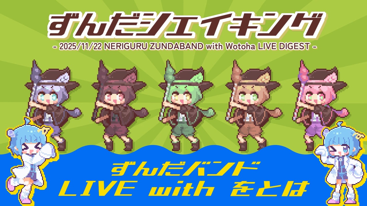 ※ニコニコは期間限定公開の予定!<br><br>◆Full(メンバー限定 / membership only)<br><a href="https://youtu.be/Qi2I2ISWP4E" target="_blank" rel="noopener nofollow">https://youtu.be/Qi2I2ISWP4E</a><br><br>キツネリ&なみぐる 冬の特別コンサート「ネリぐる」<br>ダイジェスト映像 NERIGURU Digest Movie<br><br>【Chapter】<br>00:00 コーレス練習 / Improvisation<br>2:00 ずんだシェイキング / Zunda Shaking<br><br>◆Date<br>2025/11/22(Sat)<br>下北沢MOSAiC<br><br>◆Performers<br>なみぐる with ずんだバンド / キツネリ<br><br>◆Planner / Composer / Saxophone / Movie<br>なみぐる<br><a href="https://x.com/namigroove" target="_blank" rel="noopener nofollow">https://x.com/namigroove</a><br><br>◆Vocal<br>をとは<br><a href="https://x.com/mitukineu" target="_blank" rel="noopener nofollow">https://x.com/mitukineu</a><br> @wotoha <br><br>◆MC<br>ずんだもん(VOICEVOX)<br><a href="https://voicevox.hiroshiba.jp/" target="_blank" rel="noopener nofollow">https://voicevox.hiroshiba.jp/</a><br><br>◆Drums<br>河津 幸佑<br><a href="https://www.instagram.com/undawg_xg" target="_blank" rel="noopener nofollow">https://www.instagram.com/undawg_xg</a><br><br>◆Piano<br>駄菓子O型<br><a href="https://x.com/OgataDagashi" target="_blank" rel="noopener nofollow">https://x.com/OgataDagashi</a><br><br>◆Guitar<br>もっちりしたパン<br><a href="https://x.com/bread_mocchiri" target="_blank" rel="noopener nofollow">https://x.com/bread_mocchiri</a><br><br>◆Bass<br>ゆにまる<br><a href="https://x.com/unimal_room" target="_blank" rel="noopener nofollow">https://x.com/unimal_room</a><br><br>◆Illust(ずんだもん)<br>nekomo<br><a href="https://x.com/yumenkmc" target="_blank" rel="noopener nofollow">https://x.com/yumenkmc</a><br><br>◆MV(太陽ポカポカで草)<br>犬プール<br><a href="https://x.com/1nupool" target="_blank" rel="noopener nofollow">https://x.com/1nupool</a> <br><br>◆VJ<br>めり<br><a href="https://x.com/meriarts" target="_blank" rel="noopener nofollow">https://x.com/meriarts</a><br><br>▋Information<br> ̄ ̄ ̄ ̄ ̄ ̄ ̄ ̄ ̄ ̄ ̄ ̄ ̄ ̄ ̄ ̄ ̄ ̄<br>◆制作裏話<br><a href="https://www.namigroove.com/movie/" target="_blank" rel="noopener nofollow">https://www.namigroove.com/movie/</a><br><br>▼Streaming<br><a href="https://linkco.re/HEcgp132" target="_blank" rel="noopener nofollow">https://linkco.re/HEcgp132</a><br>