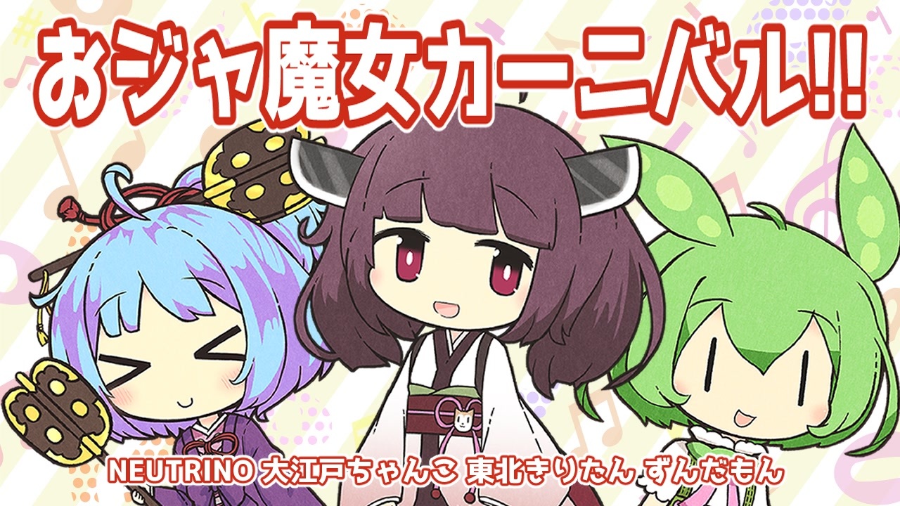 1999年放送のTVアニメ「おジャ魔女どれみ」より「おジャ魔女カーニバル!!」をカバーしました。<br><br>(以下敬称略)<br>原曲:おジャ魔女カーニバル!!<br>作詞:大森祥子/作曲:池毅/歌:MAHO堂<br><br>ボーカル:NEUTRINO 大江戸ちゃんこ・東北きりたん・ずんだもん<br>コーラス:NEUTRINO 東北イタコ<br><br>立ち絵:akihiyo<br><a href="https://seiga.nicovideo.jp/seiga/im11310957" target="_blank" rel="noopener nofollow">https://seiga.nicovideo.jp/seiga/im11310957</a><br><a href="https://seiga.nicovideo.jp/seiga/im10601764" target="_blank" rel="noopener nofollow">https://seiga.nicovideo.jp/seiga/im10601764</a><br><a href="https://seiga.nicovideo.jp/seiga/im10792934" target="_blank" rel="noopener nofollow">https://seiga.nicovideo.jp/seiga/im10792934</a><br>その他素材:ACイラスト<br><br>YouTube版:<a href="https://youtu.be/FkPp8nCq5wE" target="_blank" rel="noopener nofollow">https://youtu.be/FkPp8nCq5wE</a>