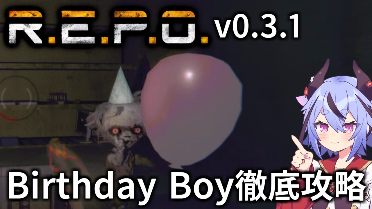 REPOに登場する敵モンスターのバースディボーイの攻略動画になります<br>遊びで検証していたら動画ができましたのでお裾分けします<br><br>誕生日を祝って複数人で胴上げをしよう!<br><br>◆出演・音声<br>鳴花ミコト / ガイノイドTalk<br>鳴花ヒメ / ガイノイドTalk<br><br>◆撮影協力<br>黒葉さん<br><a href="https://x.com/kokuyou0913" target="_blank" rel="noopener nofollow">https://x.com/kokuyou0913</a><br><br>◆立ち絵<br><a href="https://seiga.nicovideo.jp/seiga/im11545077" target="_blank" rel="noopener nofollow">https://seiga.nicovideo.jp/seiga/im11545077</a><br><a href="https://seiga.nicovideo.jp/seiga/im11545076" target="_blank" rel="noopener nofollow">https://seiga.nicovideo.jp/seiga/im11545076</a><br><br>00:00 冒頭<br>00:08 対象の特徴<br>00:25 攻撃の内容<br>00:59 探知能力<br>01:09 風船割り例外<br>01:31 プレイヤーの優先順位<br>01:52 複数色違い<br>02:04 デスポーンとスポーン<br>02:19 風船の消滅<br>02:28 落下復帰<br>03:01 攻撃の回避<br>03:35 先手必勝<br>03:45 終わり