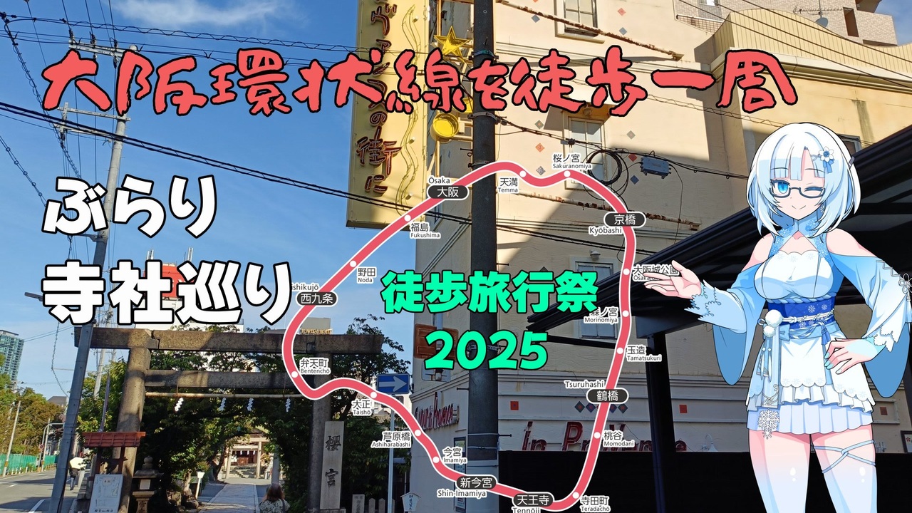 大阪環状線徒歩一周は結構当たり前にみんなやるのでおすすめ<br>ぜひ自分の目と足で楽しんでみてね<br><br>普段は狛犬とか神社巡りの動画作ってます<br>徒歩旅行祭には間に合いませんでしたが、しまなみ海道徒歩動画も現在進行中です<br><br>狛犬見聞録<br><a href="https://www.nicovideo.jp/user/268925/series/529839" target="_blank" rel="noopener nofollow">https://www.nicovideo.jp/user/268925/series/529839</a><br><br>ぶらり日帰り寺社巡り<br><a href="https://garage.nicovideo.jp/niconico-garage/video/series/535637" target="_blank" rel="noopener nofollow">https://garage.nicovideo.jp/niconico-garage/video/series/535637</a><br><br>しまなみ海道徒歩旅<br><a href="https://garage.nicovideo.jp/niconico-garage/video/series/541068" target="_blank" rel="noopener nofollow">https://garage.nicovideo.jp/niconico-garage/video/series/541068</a><br><br>声<br>VOICEVOX: WhiteCUL<br><br>立ち絵 moiky様(WhiteCUL)<br><br>使用楽曲<br>Memories of a Dream written by Kei Morimoto<br><a href="https://dova-s.jp/bgm/play22041.html" target="_blank" rel="noopener nofollow">https://dova-s.jp/bgm/play22041.html</a>