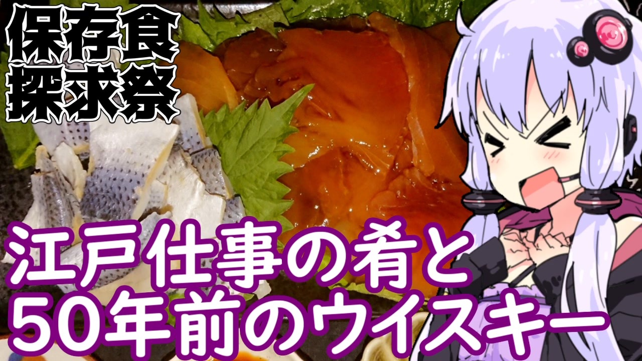 雪待月さんの『保存食探求祭』(告知→<a href="https://www.nicovideo.jp/watch/sm45411441" class="watch">sm45411441</a>)に便乗参加。<br>50年ちょい昔のオールドボトルを呑みながら、<br>肴は江戸の知恵の「仕事」をした魚。