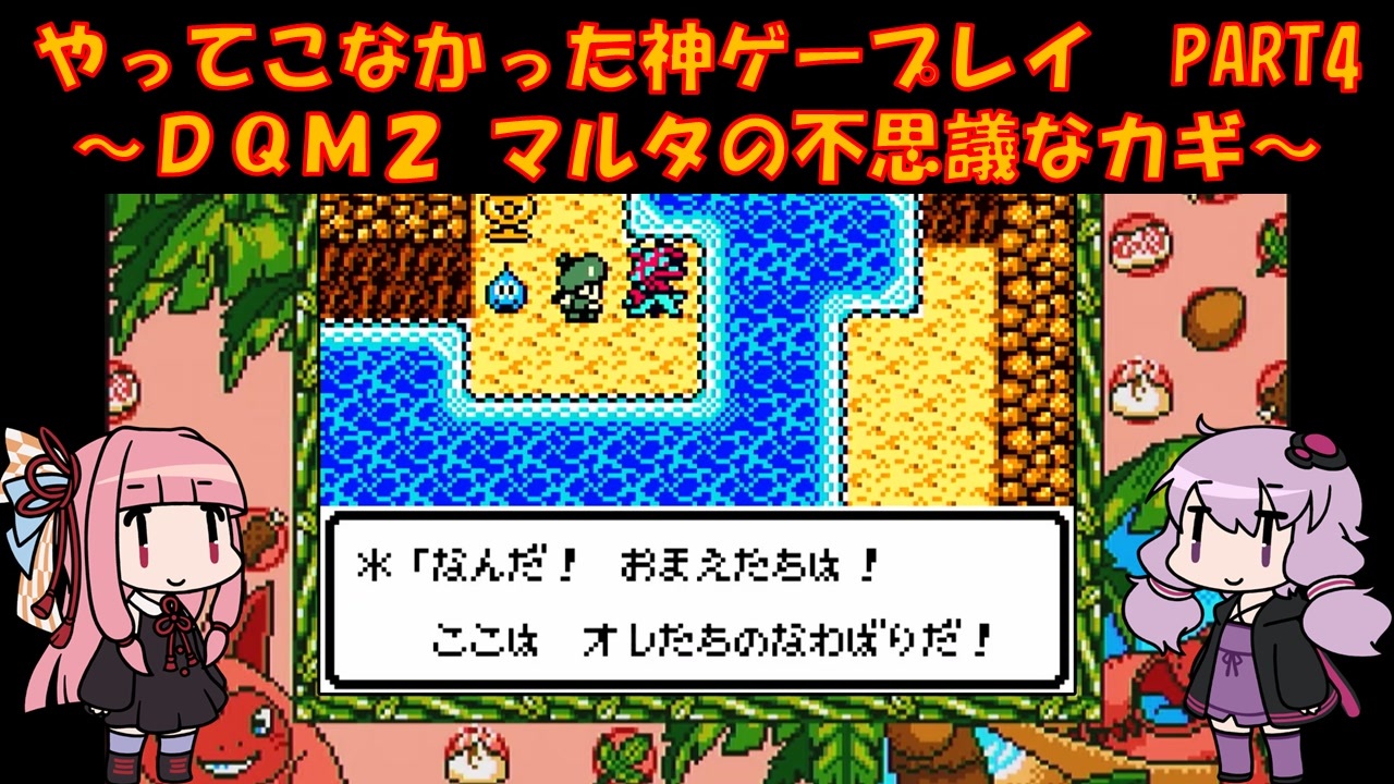 GBC ドラゴンクエストモンスターズ2 マルタの不思議なカギをプレイ<br>ゆかりさんはメジャーじゃないゲームをやる俺カッケー族だったのでドラクエをやったことがありませんでした(DSのⅤ以外)<br><br>茜:ノリノリなダンシング陽キャイカかと思いきやヤの人みたいなん出た<br>ゆ:抗争じゃい!<br><br>PART1:<a href="https://www.nicovideo.jp/watch/sm45684209" target="_blank" rel="noopener nofollow">https://www.nicovideo.jp/watch/sm45684209</a><br><br>各DQシリーズ再生リスト<br><a href="https://garage.nicovideo.jp/niconico-garage/video/series/390298" target="_blank" rel="noopener nofollow">https://garage.nicovideo.jp/niconico-garage/video/series/390298</a><br><br><br>動画内で使用させていただいた素材<br>【イラスト】<br>結月ゆかり→山栗鼠様:<a href="https://seiga.nicovideo.jp/seiga/im5354179" target="_blank" rel="noopener nofollow">https://seiga.nicovideo.jp/seiga/im5354179</a><br>琴葉茜→山栗鼠様:<a href="https://seiga.nicovideo.jp/seiga/im5342445" target="_blank" rel="noopener nofollow">https://seiga.nicovideo.jp/seiga/im5342445</a><br><br>【音声】<br>A.I.Voice:琴葉茜<br><a href="https://aivoice.jp/product/kotonoha/" target="_blank" rel="noopener nofollow">https://aivoice.jp/product/kotonoha/</a><br><br>A.I.Voice:結月ゆかり<br><a href="https://aivoice.jp/product/yukari/" target="_blank" rel="noopener nofollow">https://aivoice.jp/product/yukari/</a><br><br>この動画で利用している株式会社スクウェア・エニックスを代表とする共同著作者が権利を所有する著作物及びスギヤマ工房有限会社が権利を所有する楽曲の転載・配布は禁止いたします。<br>© ARMOR PROJECT/BIRD STUDIO/SQUARE ENIX All Rights Reserved.<br>© SUGIYAMA KOBO