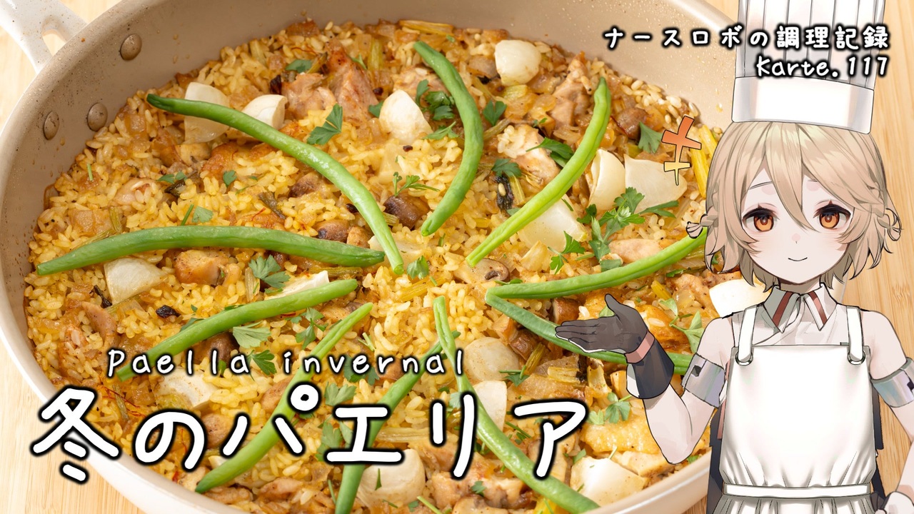 Part117はパエリャ! Paella invernalです。<br>海鮮で作るイメージの強いお料理かもしれませんが<br>お肉とお野菜主体で作っても美味しいんです。<br>特に冬は根菜、特にカブが美味しい。<br>見栄えもしてクリスマスにも向くお料理になってます。<br>ぜひお試しください。<br><br>音声: VOICEVOX:ナースロボ_タイプT<br>立ち絵: 捨て犬A<br>イラスト: いらすとや<br>SE: otologic, 効果音ラボ<br>BGM: BGMer<br /><br>[各種リンク]<br>ニコニコ動画: <a href="http://nicovideo.jp/user/130153578" target="_blank" rel="noopener nofollow">http://nicovideo.jp/user/130153578</a><br>YouTubeメイン(料理): <a href="http://youtube.com/@cooking25euph" target="_blank" rel="noopener nofollow">http://youtube.com/@cooking25euph</a><br>YouTubeサブ(料理以外): <a href="https://youtube.com/@sub25euph" target="_blank" rel="noopener nofollow">https://youtube.com/@sub25euph</a><br>X (twitter): <a href="https://twitter.com/nico25euph" target="_blank" rel="noopener nofollow">https://twitter.com/nico25euph</a><br>Bluesky: <a href="http://nico25euph.bsky.social" target="_blank" rel="noopener nofollow">http://nico25euph.bsky.social</a><br>TikTok: <a href="http://tiktok.com/@nico25euph" target="_blank" rel="noopener nofollow">http://tiktok.com/@nico25euph</a>