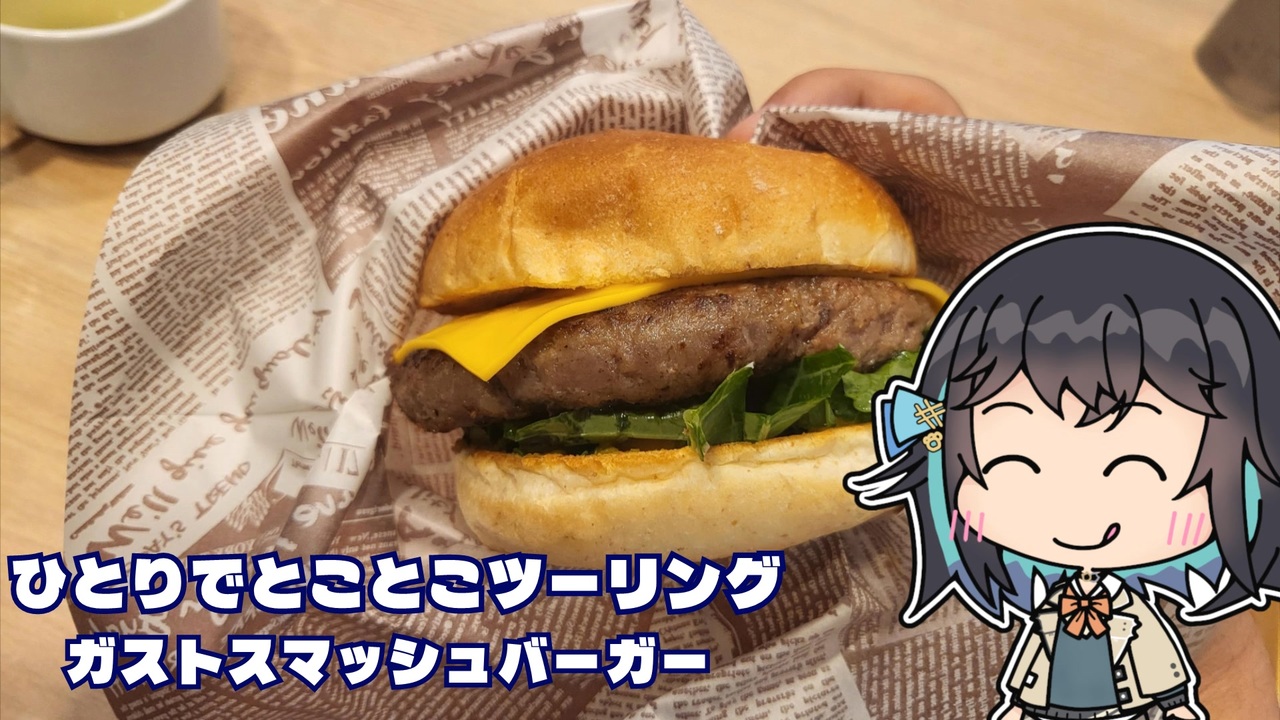 ガストでハンバーガーが食べられるとのことだったので、行ってきました。<br><br><strong>■ガストスマッシュバーガー</strong><br> <a href="https://www.skylark.co.jp/gusto/menu/menu_detail.html?mid=190_27121" target="_blank" rel="noopener nofollow">https://www.skylark.co.jp/gusto/menu/menu_detail.html?mid=190_27121</a><br> 税込999円。ポテトにスープがついてきます。<br> バンズとお肉がふわふわで、とても美味しかったです。<br> ジョイフルとはまた別の方向性で良いですね。<br><br> 余談ですが、宮舞モカがメンバーに入りました。<br> ぼちぼちと番外編で活躍してもらおうと思います。<br> <br>■BGM 【ほのぼの】Tea Party【ループ】 <a href="https://commons.nicovideo.jp/works/nc152918" target="_blank" rel="noopener">nc152918</a><br>■立ち絵 爪楊枝式でふぉるめ宮舞モカ<br>■音声 VOICEPEAK 宮舞モカ<br />■車載動画 <a href="https://www.nicovideo.jp/series/5592" target="_blank" rel="noopener">series/5592</a><br> 番外編 <a href="https://www.nicovideo.jp/series/403721" target="_blank" rel="noopener">series/403721</a><br>■ユーザページ <a href="https://www.nicovideo.jp/user/347413" target="_blank" rel="noopener">user/347413</a>