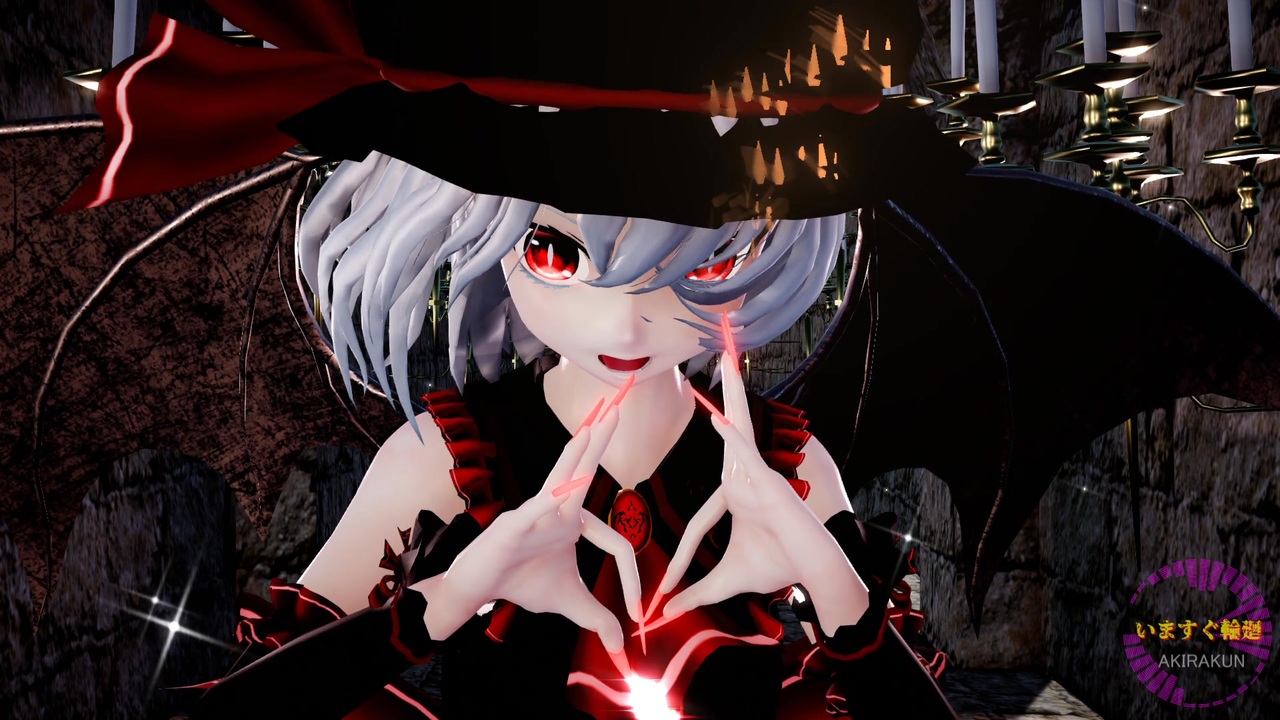レミリアに踊ってもらいました。この作品は「東方project」の2次創作です。<br>現在、作成リクエストは受け付けていません。<br><br><br>【原曲】:いますぐ輪廻 / 初音ミク:なきそ様 <a href="https://www.nicovideo.jp/watch/sm45241713" class="watch">sm45241713</a><br><br>【Song】:いますぐ輪廻 _ 重音テトSV【SynthV cover】:yasai31 様 <a href="https://www.nicovideo.jp/watch/sm45265236" class="watch">sm45265236</a><br><br>【振付】:ヤマユリ様<br><br>【モーション】:mobiusP 様 <a href="https://www.nicovideo.jp/watch/sm45476827" class="watch">sm45476827</a> 【モーションキャプチャー】<br><br>【カメラ】:鷹羽はるひ様 <a href="https://www.nicovideo.jp/watch/sm45487349" class="watch">sm45487349</a><br><br><br>■ステージ<br>王城地下通路:とじる様 <a href="https://seiga.nicovideo.jp/seiga/im11639073" target="_blank" rel="noopener">im11639073</a><br>蝋燭廊下:にくきゅー様 <a href="https://seiga.nicovideo.jp/seiga/im6247956" target="_blank" rel="noopener">im6247956</a><br>ゴシックカテドラルステージ:NOB様 <a href="https://seiga.nicovideo.jp/seiga/im9225169" target="_blank" rel="noopener">im9225169</a><br>ゴシックカテドラルステージ 廃墟版:NOB様 <a href="https://seiga.nicovideo.jp/seiga/im9244825" target="_blank" rel="noopener">im9244825</a><br>ステンドグラスっぽい何かステージ:とじる様 <a href="https://www.nicovideo.jp/watch/sm44737701" class="watch">sm44737701</a><br><br>■モデル<br>J・レミリア:J・クレイ様 <a href="https://seiga.nicovideo.jp/seiga/im8298095" target="_blank" rel="noopener">im8298095</a><br>棺桶セット Ver.1.0:まきがね様 <a href="https://seiga.nicovideo.jp/seiga/im6321293" target="_blank" rel="noopener">im6321293</a><br><br>■エフェクト<br>Ray-mmd-1.5.2:Rui様<br>初心者マテリアル:さらしな様<br>肌マテリアル:MARUSU様<br>AutoLuminous4:そぼろ様<br>水面エフェクト、Lineエフェクト v4.5:ビームマンP様<br>空中に漂う埃:化身バレッタ様<br>ikBokeh_v020a:ikeno様<br><br><br>MikuMikuDance:樋口優様<br>MMEffect :舞力介入P様<br>PMDE、PmxE:極北P様<br>AviUtl :KENくん様<br>・Aviutl + x264guiExでエンコード:rigaya様<br>Ut Video Codec suite:ゆーむP様<br>上海アリス幻楽団・東方project(ZUN様)<br><br>mylist ③<a href="https://www.nicovideo.jp/mylist/75586824" target="_blank" rel="noopener">mylist/75586824</a> ② <a href="https://www.nicovideo.jp/mylist/72970530" target="_blank" rel="noopener">mylist/72970530</a> ① <a href="https://www.nicovideo.jp/mylist/63690967" target="_blank" rel="noopener">mylist/63690967</a> 旧 <a href="https://www.nicovideo.jp/mylist/61238351" target="_blank" rel="noopener">mylist/61238351</a><br><br>※動画の転載は禁止です。