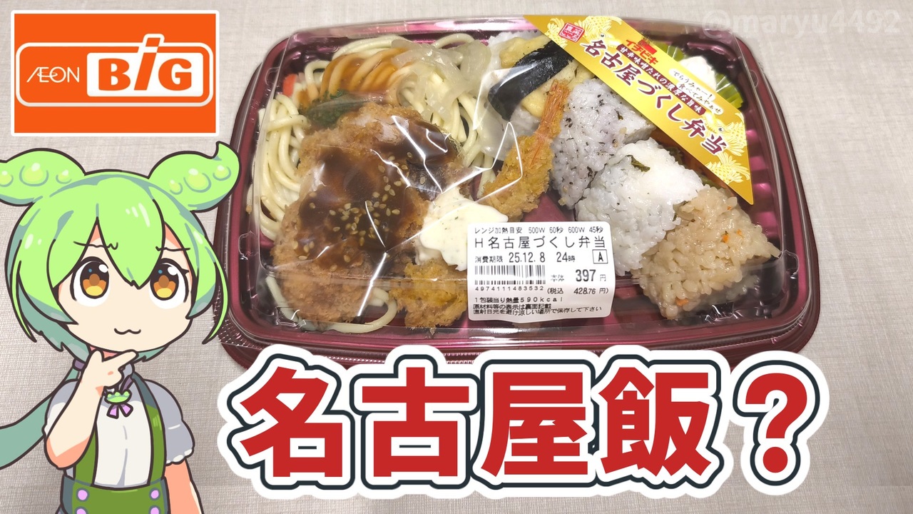 名古屋飯を詰め込んだお弁当ですが<br>これを名古屋飯と言っていいのか悩みます。<br><br><br><br>【参考】<br>イオンビッグ株式会社<br><a href="https://www.aeonbig.co.jp/" target="_blank" rel="noopener nofollow">https://www.aeonbig.co.jp/</a><br>シノブフーズ株式会社<br><a href="https://www.shinobufoods.co.jp/" target="_blank" rel="noopener nofollow">https://www.shinobufoods.co.jp/</a><br>イチビキ株式会社<br><a href="https://www.ichibiki.co.jp/about-us/outline/" target="_blank" rel="noopener nofollow">https://www.ichibiki.co.jp/about-us/outline/</a><br><br>【使用した素材】(※敬称略) <br>(合成音声)VOICEVOX/ずんだもん/四国めたん<br><a href="https://voicevox.hiroshiba.jp/" target="_blank" rel="noopener nofollow">https://voicevox.hiroshiba.jp/</a> <br>(立ち絵)坂本アヒル<br> <a href="https://seiga.nicovideo.jp/seiga/im10788496" target="_blank" rel="noopener nofollow">https://seiga.nicovideo.jp/seiga/im10788496</a><br>(楽曲)甘茶の音楽工房/「楽しい麦畑」「フルーツパフェ」「お城の舞踏会」<br><a href="https://amachamusic.chagasi.com/" target="_blank" rel="noopener nofollow">https://amachamusic.chagasi.com/</a>