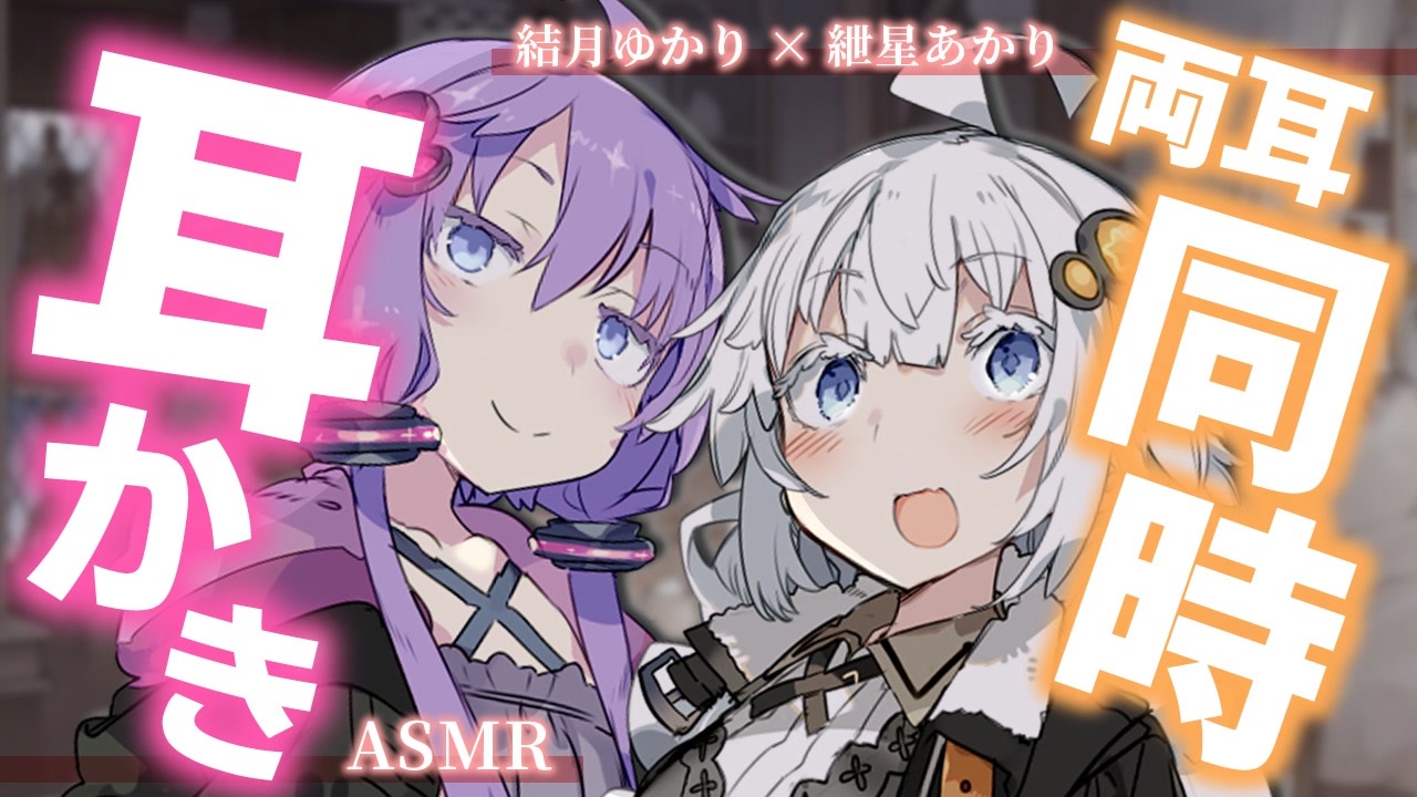 お久しぶりです〜<br>あかり(囁)とゆかり(囁)が出たので、せっかくだし二人ASMRを作ってみました!<br><br>たぶん、あかりちゃんとゆかりさんの二人ASMRを作るのはこれが初めて、かな?<br>今回は、ゲーム中にあかりちゃんが悔しがって、そのまま「癒やし勝負しようよ!」みたいな流れで耳かき対決が始まります<br>右耳はあかりちゃん、左耳はゆかりさん<br>オイル → コットン → 綿棒 → 指耳かき、って感じで進んでいくので、左右で違う癒やしが同時に入るようにしてます<br><br>ゆっくり聴いてもらえたら嬉しいです<br>コメント、広告、いいね、マイリスも励みになってます~<br><br>使用素材:<br>CV:紲星あかり<br>CV:結月ゆかり<br>紲星あかりの立ち絵素材<br><a href="https://seiga.nicovideo.jp/seiga/im9233706" target="_blank" rel="noopener nofollow">https://seiga.nicovideo.jp/seiga/im9233706</a><br>結月ゆかりの立ち絵素材<br><a href="https://seiga.nicovideo.jp/seiga/im6232152" target="_blank" rel="noopener nofollow">https://seiga.nicovideo.jp/seiga/im6232152</a><br>ずんだもんの立ち絵素材<br><a href="https://seiga.nicovideo.jp/seiga/im10792934" target="_blank" rel="noopener nofollow">https://seiga.nicovideo.jp/seiga/im10792934</a><br>OKUMONO<br>効果音ラボ<br>rokujicoco<br>TalkEditorUtilPlugin<br><a href="https://www.nicovideo.jp/watch/sm39460313" target="_blank" rel="noopener nofollow">https://www.nicovideo.jp/watch/sm39460313</a>