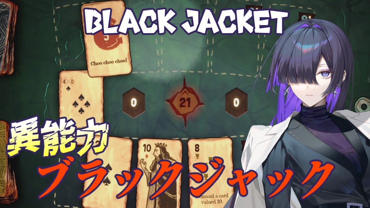 絵札を揃えたときの特殊効果でクイーンとキングを並べると<br>クイーンの加護によりキングが11になったりするのですが、そのせいでバーストしました。<br><br>◆ Black Jacket Demo Steamページ<br><a href="https://store.steampowered.com/app/4100440/Black_Jacket_Demo/" target="_blank" rel="noopener nofollow">https://store.steampowered.com/app/4100440/Black_Jacket_Demo/</a><br><br>◇ YouTube <a href="https://www.youtube.com/c/zomcho" target="_blank" rel="noopener nofollow">https://www.youtube.com/c/zomcho</a><br>◆ X(Twitter) <a href="https://twitter.com/zomcho" target="_blank" rel="noopener nofollow">https://twitter.com/zomcho</a><br><br>◇字幕の読み上げ<br>A.I.VOICE2 夜語トバリ<br>VOICEPEAK ずんだもん<br><br>◇ 今までの実況はこちら<br>◆ 生声 <a href="https://www.nicovideo.jp/mylist/20494065" target="_blank" rel="noopener">mylist/20494065</a><br>◇ VOICEPEAK <a href="https://www.nicovideo.jp/mylist/75663677" target="_blank" rel="noopener">mylist/75663677</a><br><br>◆ 実況以外の動画はこちら <a href="https://www.nicovideo.jp/mylist/26439430" target="_blank" rel="noopener">mylist/26439430</a><br><br>◇ 使用BGM<br>・効果音ラボ 様<br>・DOVA-SYNDROME 様