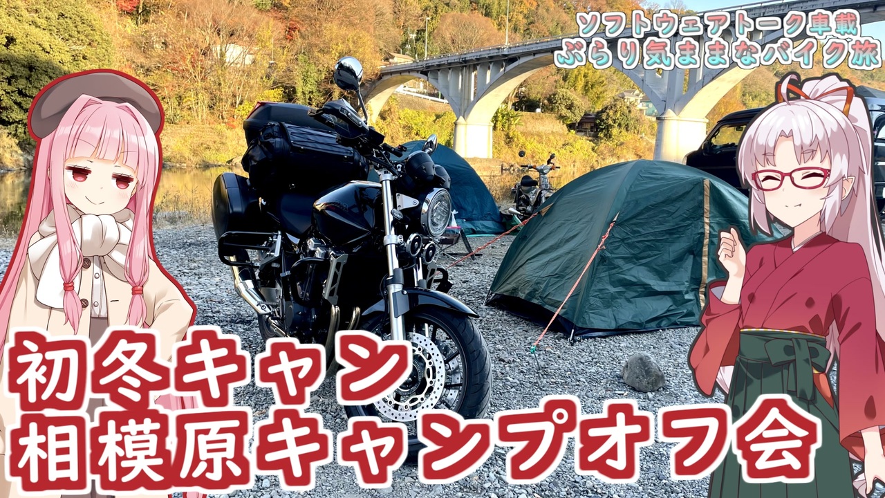 ・キャンプオフ会企画者様<br>オメガ 様 (<a href="https://www.nicovideo.jp/user/695466" target="_blank" rel="noopener">user/695466</a>)<br>【ゆっくり車載動画】相模原キャンプ① (<a href="https://www.nicovideo.jp/watch/sm42341399" class="watch">sm42341399</a>)<br>【ゆっくり車載動画】相模原キャンプ② (<a href="https://www.nicovideo.jp/watch/sm42396502" class="watch">sm42396502</a>)<br><br>・使用ソフト<br>AviUtl (<a href="https://seiga.nicovideo.jp/seiga/im1696493" target="_blank" rel="noopener">im1696493</a>)<br>PSDToolKit<br>VOICEROID2 琴葉 茜・葵<br>VOICEROID2 ついなちゃん<br><br>・乗り物<br>CB1300SF<br><br>・撮影機器<br>GoPro HERO11 Black CHDHX-111-FW<br><br>・立ち絵<br>「琴葉姉妹の立ち絵素材」ユメのオワリ 様 (<a href="https://seiga.nicovideo.jp/seiga/im10706241" target="_blank" rel="noopener">im10706241</a>)<br>「ついなちゃん立ち絵素材」こーすけさんたまりあ 様 (<a href="https://seiga.nicovideo.jp/seiga/im9747455" target="_blank" rel="noopener">im9747455</a>)<br><br>・BGM<br>「Morning」しゃろう 様 (<a href="https://commons.nicovideo.jp/works/nc98117" target="_blank" rel="noopener">nc98117</a>)<br>「夏色ビードロ」まんぼう二等兵 様 (<a href="https://commons.nicovideo.jp/works/nc142027" target="_blank" rel="noopener">nc142027</a>)<br>「カナリアスキップ」まんぼう二等兵 様 (<a href="https://commons.nicovideo.jp/works/nc163920" target="_blank" rel="noopener">nc163920</a>)<br><br>OP&シーンチェンジ<br><br>・乗り物<br>CB250R<br><br>・立ち絵<br>「琴葉姉妹の立ち絵素材」ユメのオワリ 様<br>「鳴花ヒメ非公式立ち絵素材」△○□×(みわしいば)様<br>「鳴花ミコト非公式立ち絵素材」△○□×(みわしいば)様<br>「東北きりたん座り絵素材」ユメのオワリ 様<br>「【サウナ動画投稿祭】音街ウナちゃん立ち絵素材」ユメのオワリ 様<br>「【素材】ゆかマキ制服立ち絵」からい 様<br>「紲星あかり立ち絵」からい 様<br>「ついなちゃん立ち絵素材私服セット」こーすけさんたまりあ 様<br>「東北ずん子 立ち絵素材」桧野 拓海 様<br>「さとうささら立ち絵」kulori 様<br>「すずきつづみ立ち絵」kulori 様<br>「IAさん立ち絵素材」MtU 様<br>「OИEさん立ち絵素材」MtU 様<br>「双葉湊音の立ち絵素材」ユメのオワリ 様<br>「紡乃世詩音立ち絵素材集_2025」ユメのオワリ 様<br>「花隈千冬立ち絵素材」ユメのオワリ 様<br>「【素材】宮舞モカ立ち絵」からい 様<br>「ほんわかフィーちゃん立ち絵素材」いかるが 様<br>「口のないSD琴葉姉妹立ち絵素材」空どうふ 様<br><br>・BGM<br>「晴色カレイドスコープ」まんぼう二等兵 様<br>「さんさん日和」まんぼう二等兵 様