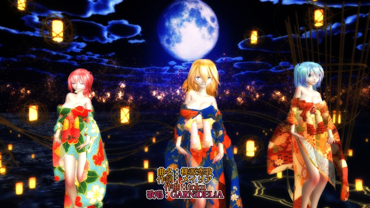 楽曲情報<br>曲名:桃源恋歌<br>作詞:メイリア<br>作曲:toku<br>歌唱:GARNiDELiA<br>公式MV:<a href="https://youtu.be/EbhmgfxARXA?si=TADdjYRCuoIlWQ2c" target="_blank" rel="noopener nofollow">https://youtu.be/EbhmgfxARXA?si=TADdjYRCuoIlWQ2c</a><br><br>踊ってみた・モーション<br>【みうめ・メイリア・217】踊ってみた第5弾<br>振付:みうめ<br><a href="https://www.nicovideo.jp/watch/sm31218942" target="_blank" rel="noopener nofollow">https://www.nicovideo.jp/watch/sm31218942</a><br><br>【MMD】桃源恋歌3人Ver.(モーション配布:moka様)<br><a href="https://www.nicovideo.jp/watch/sm31873399" target="_blank" rel="noopener nofollow">https://www.nicovideo.jp/watch/sm31873399</a><br><br>使用モデル<br>Tda式改変 柳 未亜 kimono style<br>Tda式改変 初音ミク kimono style<br>Tda式改変 重音テト kimono style<br><br>使用ステージ<br>【MMDステージ配布】ランプステージ(Ai様)<br><a href="https://seiga.nicovideo.jp/seiga/im11018808" target="_blank" rel="noopener nofollow">https://seiga.nicovideo.jp/seiga/im11018808</a><br><br><br><br />■シェーダー・エフェクト / Shader & Effect<br>sdPBR480:サンドマン様<br><a href="https://www.nicovideo.jp/watch/sm43948524" class="watch">sm43948524</a><br>そぼろ様<br><a href="https://www.nicovideo.jp/watch/sm19123817" class="watch">sm19123817</a><br><a href="https://seiga.nicovideo.jp/seiga/im3061709" target="_blank" rel="noopener">im3061709</a><br><a href="https://www.nicovideo.jp/watch/sm16087751" class="watch">sm16087751</a><br>おたもん様<br><a href="https://seiga.nicovideo.jp/seiga/im1763840" target="_blank" rel="noopener">im1763840</a><br><a href="https://seiga.nicovideo.jp/seiga/im1561862" target="_blank" rel="noopener">im1561862</a><br><a href="https://seiga.nicovideo.jp/seiga/im2992119" target="_blank" rel="noopener">im2992119</a><br>化身バレッタ様<br><a href="https://www.nicovideo.jp/watch/sm20916681" class="watch">sm20916681</a><br><a href="https://seiga.nicovideo.jp/seiga/im4505494" target="_blank" rel="noopener">im4505494</a><br><br>■ツール・編集 / Tools & Software<br>MikuMikuDance:樋口優様<br><a href="https://www.nicovideo.jp/watch/sm2420025" class="watch">sm2420025</a><br>MikuMikuEffect:舞力介入P様<br><a href="https://www.nicovideo.jp/watch/sm12149815" class="watch">sm12149815</a><br>MikuMikuPlus:さくや様<br><a href="https://www.nicovideo.jp/watch/sm34761249" class="watch">sm34761249</a><br>VmdSizing:miu様<br><a href="https://seiga.nicovideo.jp/seiga/im9755721" target="_blank" rel="noopener">im9755721</a><br>Wondershare Filmora 15<br><br>--------------------------------------------------<br>・動画を見て下さり有難う御座います。<br>・Thank you for watching the video.<br>・영상을 봐주셔서 감사합니다.<br>・感谢您观看视频。<br><br>この動画は転載禁止です。<br>This video may not be reproduced.<br>이 동영상은 무단 전재를 금합니다.<br>本视频不得复制<br>--------------------------------------------------<br><br><br><br><br><br><br><br><br><br>