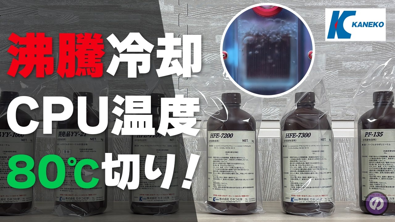 2024年に製作した「沸騰冷却PC」が直面していた冷媒問題。ノベックの生産終了で絶望的でしたが、なんとカネコ化学さんから冷媒の無償提供をいただけることになりました!<br>今回は沸点の異なる6種類の液体を徹底比較。Ryzen 7 8700Gを相手に、どの液体が最強の冷却性能を見せるのか?そしてテスト中に起きた「アクリル割れ」の衝撃の結末とは…。<br><br>・カネコ化学株式会社<br><a href="https://www.kaneko-sk.co.jp/" target="_blank" rel="noopener nofollow">https://www.kaneko-sk.co.jp/</a><br><br>・カネコ化学の公式オンラインストア<br><a href="https://youkaizai.com/" target="_blank" rel="noopener nofollow">https://youkaizai.com/</a><br>※法人、事業者および個人事業主にのみ販売をおこなっております。個人向け販売はおこなっておりません<br><br><br />📢お知らせ<br>・サポーターで応援お願いします!<br><a href="https://www.nicovideo.jp/user/127294841" target="_blank" rel="noopener nofollow">https://www.nicovideo.jp/user/127294841</a><br><br>・個性的なTシャツとか販売してます!<br><a href="https://up-t.jp/creator/669205729e975" target="_blank" rel="noopener nofollow">https://up-t.jp/creator/669205729e975</a><br><br>・BOOTHで3Dモデルを販売してます!<br><a href="https://noyosuke.booth.pm/" target="_blank" rel="noopener nofollow">https://noyosuke.booth.pm/</a><br><br>・X(Twitter)で筋トレとかやってます!<br><a href="https://twitter.com/NOYOSUKE_YASURI" target="_blank" rel="noopener nofollow">https://twitter.com/NOYOSUKE_YASURI</a><br><br>・ミニ四駆の記事をnoteに投稿しています!<br><a href="https://note.com/noyosuke_yasuri/" target="_blank" rel="noopener nofollow">https://note.com/noyosuke_yasuri/</a><br><br>・YouTubeにも投稿しています!<br><a href="https://www.youtube.com/@NOSUKE_DIYPC" target="_blank" rel="noopener nofollow">https://www.youtube.com/@NOSUKE_DIYPC</a><br><a href="https://www.youtube.com/@YOSUKE_MINI4WD" target="_blank" rel="noopener nofollow">https://www.youtube.com/@YOSUKE_MINI4WD</a><br><br><br>🎵BGM、SE、画像<br> ・DOVA-SYNDROME<br><a href="https://dova-s.jp/" target="_blank" rel="noopener nofollow">https://dova-s.jp/</a><br><br> ・いらすとや<br><a href="https://www.irasutoya.com/" target="_blank" rel="noopener nofollow">https://www.irasutoya.com/</a><br><br>・甘茶の音楽工房<br><a href="https://amachamusic.chagasi.com/" target="_blank" rel="noopener nofollow">https://amachamusic.chagasi.com/</a><br><br>・効果音ラボ<br><a href="https://soundeffect-lab.info/" target="_blank" rel="noopener nofollow">https://soundeffect-lab.info/</a><br><br>・魔王魂<br><a href="https://maou.audio/category/bgm/" target="_blank" rel="noopener nofollow">https://maou.audio/category/bgm/</a><br><br><br>📸撮影協力<br>・ハイジャ(SL60ⅡD)<br><a href="https://x.com/ZJtbAjYyiACgX4T" target="_blank" rel="noopener nofollow">https://x.com/ZJtbAjYyiACgX4T</a><br><br>・VOICEVOX:ずんだもん達