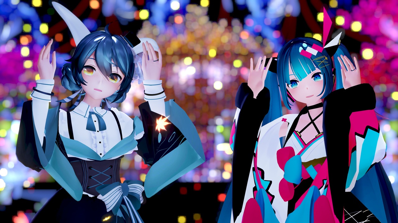 お借りした物<br>Music: 「絶頂讃歌」/和ぬか様/<a href="https://youtu.be/pLBX9vdrtn4?si=56h15swp7jS8ialp" target="_blank" rel="noopener nofollow">https://youtu.be/pLBX9vdrtn4?si=56h15swp7jS8ialp</a><br>Covered: +α/あるふぁきゅん。/<a href="https://www.nicovideo.jp/watch/sm41281343" class="watch">sm41281343</a><br><br>振付: トレース元:あおか様/<a href="https://www.nicovideo.jp/watch/sm42388781" class="watch">sm42388781</a><br>Motion: yy様/<a href="https://www.nicovideo.jp/watch/sm45294016" class="watch">sm45294016</a><br>Camera: まゆり様/<a href="https://www.nicovideo.jp/watch/sm45480925" class="watch">sm45480925</a><br><br>Model:<br>PilouLaBaka様/YYB式改变 lievre de jade 初音ミク/<a href="https://seiga.nicovideo.jp/seiga/im10922787" target="_blank" rel="noopener">im10922787</a>/<a href="https://www.nicovideo.jp/watch/sm39898698" class="watch">sm39898698</a><br>PilouLaBaka様/ぴるら式初音ミクマジミライ2020/<a href="https://www.nicovideo.jp/watch/sm45470116" class="watch">sm45470116</a>/<a href="https://seiga.nicovideo.jp/seiga/im11678552" target="_blank" rel="noopener">im11678552</a><br>Ring: 操ちゃん/<a href="https://seiga.nicovideo.jp/seiga/im11278551" target="_blank" rel="noopener">im11278551</a><br>Earring: 操ちゃん/<a href="https://seiga.nicovideo.jp/seiga/im9541033" target="_blank" rel="noopener">im9541033</a><br>Bracelet: KEITEL様/<a href="https://seiga.nicovideo.jp/seiga/im8046728" target="_blank" rel="noopener">im8046728</a> <br><br>Stage: 一護牛乳様/和風ステージ(華)/<a href="https://seiga.nicovideo.jp/seiga/im8698264" target="_blank" rel="noopener">im8698264</a><br><br>以上ありがとうございました、<br>詳しくはコンデンツツリーを御覧になって下さい。<br><br>★PilouLaBaka様のモデリングの和装のミクさんおふたりにデュオで踊って頂きました。<br>lievre de jade Mikuさんは意訳すると「月兎」さんの様です。<br><br>等身はマジミライ2020さんがぽっくりを履いている事もあってかなり高いのですがPilouLaBaka様に確認の上、<br>等身をほぼ揃えてあります。<br><br>lievre de jade Mikuさんは起用例があまり無いようですが、この和装デュオはバランスが取れていて良い感じです。<br><br>ノイズが多くてすいません、高画質YouTube版をお勧めします。<a href="https://youtu.be/r3XHDA7nK20" target="_blank" rel="noopener nofollow">https://youtu.be/r3XHDA7nK20</a>
