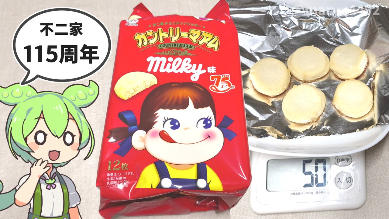 不二家創業115周年、ペコちゃん75周年を記念した新商品が<br>2025年11月11日に登場!<br>不二家を代表するカントリーマアムとミルキーを合わせたものですが<br>どんな味なのでしょうか。<br><br><br><br>【参考】<br>不二家創業115周年とペコちゃん75周年を記念し<br>ブランド横断コラボが実現!2025.11.04(PR TIMES)<br><a href="https://prtimes.jp/main/html/rd/p/000000346.000097396.html" target="_blank" rel="noopener nofollow">https://prtimes.jp/main/html/rd/p/000000346.000097396.html</a><br>12枚カントリーマアム(ミルキー味)(不二家)<br><a href="https://www.fujiya-peko.co.jp/sweets/item/17101.html" target="_blank" rel="noopener nofollow">https://www.fujiya-peko.co.jp/sweets/item/17101.html</a><br><br>【使用した素材】(※敬称略)<br>(合成音声)VOICEVOX/ずんだもん/四国めたん<br><a href="https://voicevox.hiroshiba.jp/" target="_blank" rel="noopener nofollow">https://voicevox.hiroshiba.jp/</a><br>(立ち絵)坂本アヒル<br><a href="https://seiga.nicovideo.jp/seiga/m10788496/im10791276" target="_blank" rel="noopener nofollow">https://seiga.nicovideo.jp/seiga/m10788496/im10791276</a><br>(楽曲)甘茶の音楽工房/「日々是好日」「残業戦士」<br><a href="https://amachamusic.chagasi.com" target="_blank" rel="noopener nofollow">https://amachamusic.chagasi.com</a>