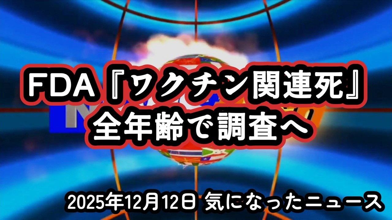 ◆FDAが動いた『COVID-19ワクチン関連死』最新ニュース 全年齢で調査開始の重大転換<br><br>FDAが『ワクチン関連死』を全年齢で調査へ<br><br>あらすじ<br>FDAがCOVID-19ワクチン接種後の死亡例について、調査対象を子どもから大人、そして全年齢層へと広げました。小児10例の調査を認めたことに続き、成人例への拡大が報じられ、規制当局の姿勢が明確に変わりつつあります。一方、Children’s Health Defenseがファイザーとモデルナのワクチン承認取り消しを求める市民請願を提出するなど、社会的な動きも加速。Bloombergの報道も含め、複数の視点から今何が起きているのかを整理します。政治的でも感情的でもなく、事実ベースで冷静に見つめたい人に向けた一本です。<br><br>◆今回の台本&詳細<a href="https://keiichiro8140.hatenablog.com/entry/25121222111" target="_blank" rel="noopener nofollow">https://keiichiro8140.hatenablog.com/entry/25121222111</a><br><br>◆これまでの動画<a href="https://x.gd/sPXoJ" target="_blank" rel="noopener nofollow">https://x.gd/sPXoJ</a><br><br>◆もしも(BAN)の時のためのマイリンク集<a href="https://lit.link/K-16_News44" target="_blank" rel="noopener nofollow">https://lit.link/K-16_News44</a><br><br>ご覧いただきありがとうございます<br>m(_ _)m<br><br>気になったニュース 2025/12/12<br><br />著作権、肖像権に配慮して作成しております。<br><br>◆気になったニュースの台本!?<br>メモ代わりに作った台本をそのままあげてます<br><a href="https://keiichiro8140.hatenablog.com/." target="_blank" rel="noopener nofollow">https://keiichiro8140.hatenablog.com/.</a><br><br><br>ここからはシリーズ紹介<br><br><br>◆ ワクチン解毒・デトックス<br><a href="https://x.gd/fZweg" target="_blank" rel="noopener nofollow">https://x.gd/fZweg</a><br><br>◆ウイリアム・マキス博士のがん治療(イベルメクチン・フェンベンダゾール等)<br><a href="https://x.gd/AtFYS" target="_blank" rel="noopener nofollow">https://x.gd/AtFYS</a><br><br>◆予防接種健康被害救済制度<br><a href="https://x.gd/0xK9x" target="_blank" rel="noopener nofollow">https://x.gd/0xK9x</a><br><br>◆気になったニュース #1501~<br><br>◆ 【ショートver】気になったニュース<br><a href="https://x.gd/7MxXC" target="_blank" rel="noopener nofollow">https://x.gd/7MxXC</a><br><br>◆ 気になったニュース #1001~<br><a href="https://x.gd/Lp8gv" target="_blank" rel="noopener nofollow">https://x.gd/Lp8gv</a><br><br>◆ 気になったニュース #501~<br><a href="https://x.gd/EmbS4" target="_blank" rel="noopener nofollow">https://x.gd/EmbS4</a><br><br>◆ 気になったニュース #1~#500<br><a href="https://x.gd/uPhNb" target="_blank" rel="noopener nofollow">https://x.gd/uPhNb</a><br><br>◆ X(旧Twitter)・テレグラムで気になった情報<br><a href="https://x.gd/YG6FT" target="_blank" rel="noopener nofollow">https://x.gd/YG6FT</a><br><br>◆ 日比谷5万人パレードデ⚪生放送アーカイブ動画<br><a href="https://x.gd/3CHJv" target="_blank" rel="noopener nofollow">https://x.gd/3CHJv</a><br><br>◆日比谷5万人パレード⚪モのマイリスト作ってみました<br><a href="https://nico.ms/mylist/76828848?ref=sp_other" target="_blank" rel="noopener nofollow">https://nico.ms/mylist/76828848?ref=sp_other</a><br><br>◆3.30 令和の百姓⚪⚪<br><a href="https://www.nicovideo.jp/series/511791?ref=garage_share_other" target="_blank" rel="noopener nofollow">https://www.nicovideo.jp/series/511791?ref=garage_share_other</a><br><br>◆ 及川幸久さんの【XNEWS】シリーズ<br><a href="https://x.gd/3k78K" target="_blank" rel="noopener nofollow">https://x.gd/3k78K</a><br><br>◆これまでの動画<a href="https://x.gd/sPXoJ" target="_blank" rel="noopener nofollow">https://x.gd/sPXoJ</a><br><br>◆もしも(BAN)の時のためのマイリンク集<a href="https://lit.link/K-16_News44" target="_blank" rel="noopener nofollow">https://lit.link/K-16_News44</a><br><br>