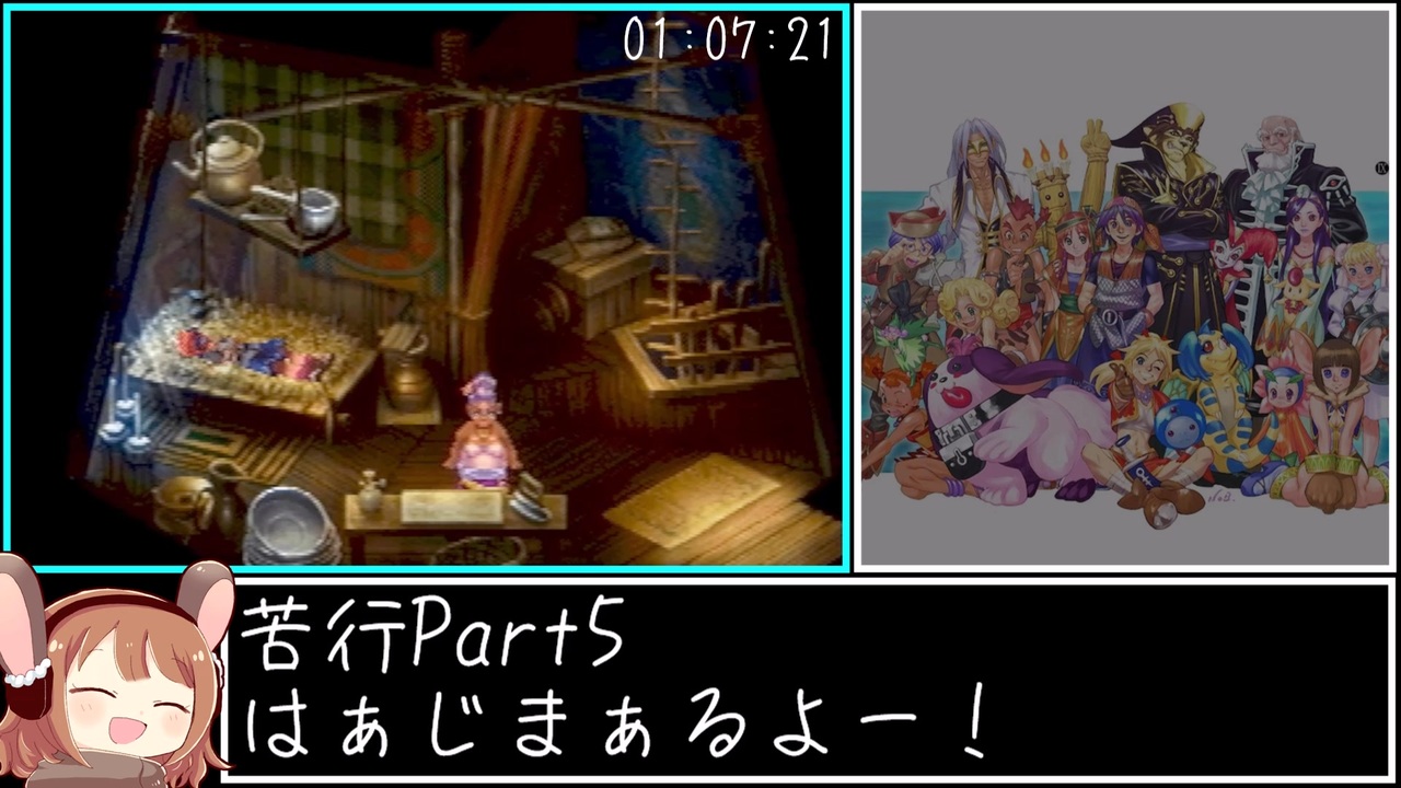 「隊長!ヤツらはキッドを見捨てるルートを選ぶようでありますな!」<br>「あ、RTAではストーリー短縮の恩恵がデカすぎるんだな」<br>「選択肢の下が助けるルートなのに、ちょっとした意地の悪さを感じますな!」<br>「でも通常プレイならやっぱり助けるルートを選んじゃう、なんだな」<br>「しかし見捨てるルートではなんと、褐色肌の巨乳人妻が仲間になるのでありますな!」<br>「か、か、か、褐色肌の巨乳人妻!?」<br>「おや?どうしたでありますか?隊長」<br>「ちょ、ちょ、ちょっと用事を思い出したんだな!今日のところはもう帰るんだな!」<br>「いや~!隊長もお好きでありますな~!」<br><br><br><br><br><br><br><br><br><br><br><br><br><br><br><br><br><br><br><br><br><br><br>「ふん!!!!!!!!!!!!!!!!!!」<br>「デコターーーーーーーーン!!!!!!!!」<br><br>【このシリーズのリンク】<br>Part1:<a href="https://www.nicovideo.jp/watch/sm45629580" class="watch">sm45629580</a><br>前:<a href="https://www.nicovideo.jp/watch/sm45694646" class="watch">sm45694646</a><br>次:<a href="https://www.nicovideo.jp/watch/sm45744358" class="watch">sm45744358</a><br>マイリスト:<a href="https://www.nicovideo.jp/mylist/79017664" target="_blank" rel="noopener">mylist/79017664</a><br><br>【クロノシリーズRTAマイリスト】<br>クロスGoodEnding:<a href="https://www.nicovideo.jp/mylist/77599763" target="_blank" rel="noopener">mylist/77599763</a><br>クロスAllCharacters:<a href="https://www.nicovideo.jp/mylist/75145088" target="_blank" rel="noopener">mylist/75145088</a><br>トリガーAllEndings:<a href="https://www.nicovideo.jp/mylist/78090522" target="_blank" rel="noopener">mylist/78090522</a><br><br>【Twitch】<br><a href="https://www.twitch.tv/tomo_rta" target="_blank" rel="noopener nofollow">https://www.twitch.tv/tomo_rta</a><br><br>【Twitter】<br><a href="https://x.com/Tomo_RTA" target="_blank" rel="noopener nofollow">https://x.com/Tomo_RTA</a><br><br>【固定敵行動パターン表】<br><a href="https://drive.google.com/file/d/1hju4hcsEMiq0z5-mkneWtSzS8pygNjj2/view?usp=drive_link" target="_blank" rel="noopener nofollow">https://drive.google.com/file/d/1hju4hcsEMiq0z5-mkneWtSzS8pygNjj2/view?usp=drive_link</a><br><br>【戦闘における基礎知識】<br><a href="https://drive.google.com/file/d/1uUlmS8Fk4ungxdywBPpJXOTwvDb5Jdbh/view?usp=drive_link" target="_blank" rel="noopener nofollow">https://drive.google.com/file/d/1uUlmS8Fk4ungxdywBPpJXOTwvDb5Jdbh/view?usp=drive_link</a><br><br>【権利】<br>CHRONO CROSS<br>© SQUARE ENIX CO., LTD. All Rights Reserved.<br>Character Design: © SQUARE ENIX CO., LTD. /© NOBUTERU YUUKI All Rights Reserved.<br>RADICAL DREAMERS<br>© SQUARE ENIX CO., LTD. All Rights Reserved.