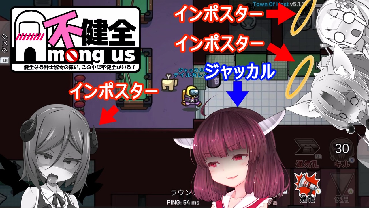 ジャッカルで思いっきり暴れた回です<br>やはりキルこそ全てを解決する・・・!!<br><br>使用MOD:TOWN OF HOST<br><br>参加者(敬称略)と代理キャラ<br>テイルカレン:東北きりたん<br>きんにく:琴葉茜【<a href="https://www.nicovideo.jp/user/92232478" target="_blank" rel="noopener">user/92232478</a>】<br>ShortLolic:猫使ビィ【<a href="https://www.nicovideo.jp/user/119080367" target="_blank" rel="noopener">user/119080367</a>】<br>みU:東北イタコ【<a href="https://www.nicovideo.jp/user/4744177" target="_blank" rel="noopener">user/4744177</a>】<br>頻哪碸(ピナフォン):東北ずん子【<a href="https://www.nicovideo.jp/user/131048811" target="_blank" rel="noopener">user/131048811</a>】<br>半額:栗田まろん【<a href="https://www.nicovideo.jp/user/123850576" target="_blank" rel="noopener">user/123850576</a>】<br>ヨシ:アルマちゃん【<a href="https://www.nicovideo.jp/user/21293027" target="_blank" rel="noopener">user/21293027</a>】<br>ヴィア:四国めたん【<a href="https://www.nicovideo.jp/user/123783290" target="_blank" rel="noopener">user/123783290</a>】<br>レシア:琴詠ニア【<a href="https://www.nicovideo.jp/user/7767093" target="_blank" rel="noopener">user/7767093</a>】<br>あらばき:琴葉葵【<a href="https://www.nicovideo.jp/user/13344003" target="_blank" rel="noopener">user/13344003</a>】<br>NATA:あいえるたん【<a href="https://www.nicovideo.jp/user/2651618" target="_blank" rel="noopener">user/2651618</a>】<br>アンカルジア:春日部つむぎ【<a href="https://www.nicovideo.jp/user/736445" target="_blank" rel="noopener">user/736445</a>】<br>ぽんこつ:WhiteCUL【<a href="https://www.nicovideo.jp/user/13344982" target="_blank" rel="noopener">user/13344982</a>】<br><s>ながれ:回線切断のためキャラ無</s><br><br>VOICEVOX | 無料のテキスト読み上げ・歌声合成ソフトウェア: <a href="https://voicevox.hiroshiba.jp/" target="_blank" rel="noopener nofollow">https://voicevox.hiroshiba.jp/</a><br>無料AIトークソフトCOEIROINK: <a href="https://coeiroink.com" target="_blank" rel="noopener nofollow">https://coeiroink.com</a><br>
