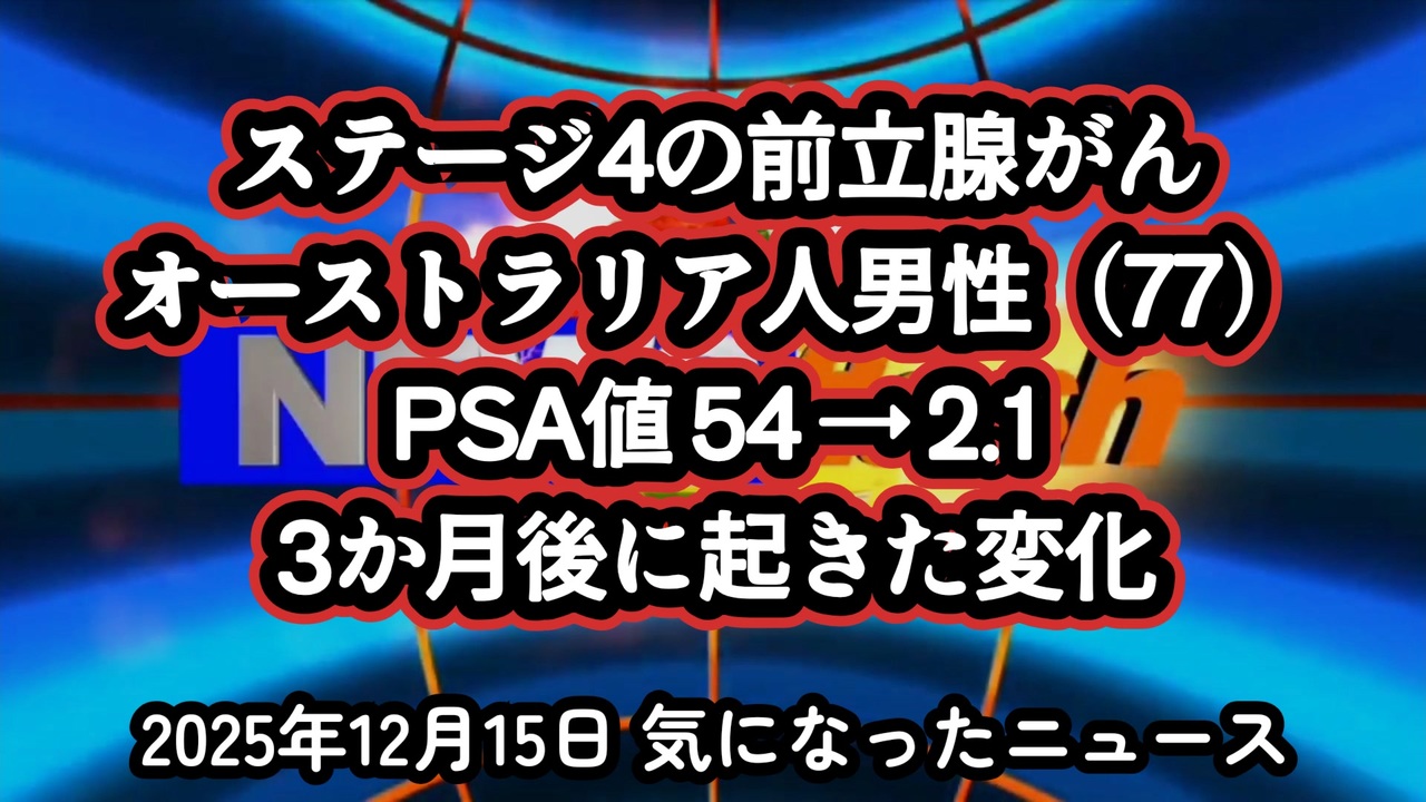 【がん治療】◆ステージ4の前立腺がんと診断されたオーストラリア人男性(77)PSA54→2.1 ステージ4前立腺がん、3か月後に起きた変化【ウイリアム・マキス博士】<br><br>あらすじ<br>77歳のオーストラリア人男性が、新たにステージ4の前立腺がんと診断された。<br>診断時のPSAは54。背中の痛みがあり、検査では骨への転移も確認されていた。<br>年齢、進行度、数値だけを見れば、決して軽い状況ではない。<br><br>それから3か月後、検査結果に明確な変化が現れる。<br>数値、画像、どちらにもはっきりとした違いが出たという。<br><br>なぜこのような変化が起きたのか。<br>なぜ同じ方法でも、すべての人が同じ結果にならないのか。<br>そして、現代のがん治療と比べて、何が同じで、何が違うのか。<br><br>◆今回の台本&詳細<a href="https://keiichiro8140.hatenablog.com/entry/25121555111" target="_blank" rel="noopener nofollow">https://keiichiro8140.hatenablog.com/entry/25121555111</a><br><br>◆これまでの動画<a href="https://x.gd/sPXoJ" target="_blank" rel="noopener nofollow">https://x.gd/sPXoJ</a><br><br>◆もしも(BAN)の時のためのマイリンク集<a href="https://lit.link/K-16_News44" target="_blank" rel="noopener nofollow">https://lit.link/K-16_News44</a><br><br>ご覧いただきありがとうございます<br>m(_ _)m<br><br>気になったニュース 2025/12/15<br><br />著作権、肖像権に配慮して作成しております。<br><br>◆気になったニュースの台本!?<br>メモ代わりに作った台本をそのままあげてます<br><a href="https://keiichiro8140.hatenablog.com/." target="_blank" rel="noopener nofollow">https://keiichiro8140.hatenablog.com/.</a><br><br><br>ここからはシリーズ紹介<br><br><br>◆ ワクチン解毒・デトックス<br><a href="https://x.gd/fZweg" target="_blank" rel="noopener nofollow">https://x.gd/fZweg</a><br><br>◆ウイリアム・マキス博士のがん治療(イベルメクチン・フェンベンダゾール等)<br><a href="https://x.gd/AtFYS" target="_blank" rel="noopener nofollow">https://x.gd/AtFYS</a><br><br>◆予防接種健康被害救済制度<br><a href="https://x.gd/0xK9x" target="_blank" rel="noopener nofollow">https://x.gd/0xK9x</a><br><br>◆気になったニュース #1501~<br><br>◆ 【ショートver】気になったニュース<br><a href="https://x.gd/7MxXC" target="_blank" rel="noopener nofollow">https://x.gd/7MxXC</a><br><br>◆ 気になったニュース #1001~<br><a href="https://x.gd/Lp8gv" target="_blank" rel="noopener nofollow">https://x.gd/Lp8gv</a><br><br>◆ 気になったニュース #501~<br><a href="https://x.gd/EmbS4" target="_blank" rel="noopener nofollow">https://x.gd/EmbS4</a><br><br>◆ 気になったニュース #1~#500<br><a href="https://x.gd/uPhNb" target="_blank" rel="noopener nofollow">https://x.gd/uPhNb</a><br><br>◆ X(旧Twitter)・テレグラムで気になった情報<br><a href="https://x.gd/YG6FT" target="_blank" rel="noopener nofollow">https://x.gd/YG6FT</a><br><br>◆ 日比谷5万人パレードデ⚪生放送アーカイブ動画<br><a href="https://x.gd/3CHJv" target="_blank" rel="noopener nofollow">https://x.gd/3CHJv</a><br><br>◆日比谷5万人パレード⚪モのマイリスト作ってみました<br><a href="https://nico.ms/mylist/76828848?ref=sp_other" target="_blank" rel="noopener nofollow">https://nico.ms/mylist/76828848?ref=sp_other</a><br><br>◆3.30 令和の百姓⚪⚪<br><a href="https://www.nicovideo.jp/series/511791?ref=garage_share_other" target="_blank" rel="noopener nofollow">https://www.nicovideo.jp/series/511791?ref=garage_share_other</a><br><br>◆ 及川幸久さんの【XNEWS】シリーズ<br><a href="https://x.gd/3k78K" target="_blank" rel="noopener nofollow">https://x.gd/3k78K</a><br><br>◆これまでの動画<a href="https://x.gd/sPXoJ" target="_blank" rel="noopener nofollow">https://x.gd/sPXoJ</a><br><br>◆もしも(BAN)の時のためのマイリンク集<a href="https://lit.link/K-16_News44" target="_blank" rel="noopener nofollow">https://lit.link/K-16_News44</a><br><br>