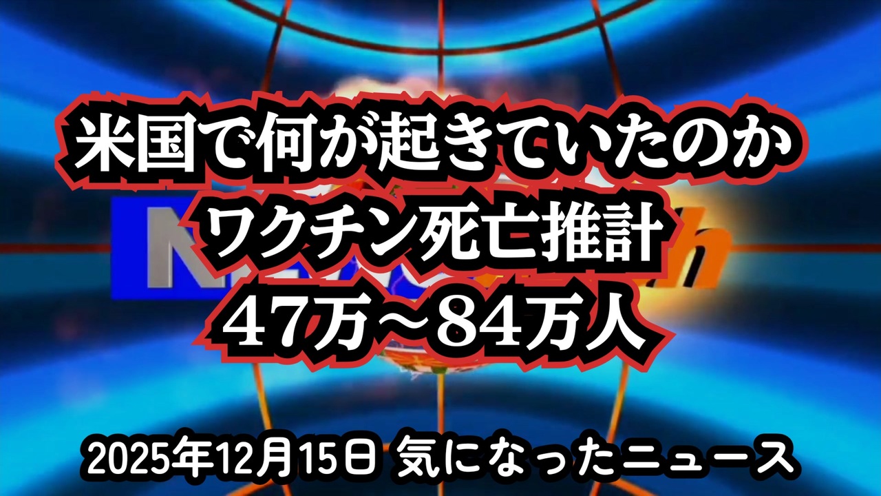 ◆米国で何が起きていたのか|ワクチン死亡推計47万〜84万人<br><br>あらすじ<br>COVID-19ワクチン接種が本格化した2021年以降、米国の死亡統計に、これまでとは異なる動きが現れている。<br>CDCの公式データ、州保健当局による大規模調査、ワクチン有害事象報告制度など、複数の独立したデータソースが示すのは、COVID以外の死亡が接種開始後に増加している可能性だ。<br><br>とくに注目されているのは、ワクチンの種類ごとの差や、接種開始直後に集中して起きたとされる変化である。<br>これらの数字は何を意味しているのか。<br>公式発表と統計データの間にあるズレは、どこから生じているのか。<br><br>◆今回の台本&詳細<a href="https://keiichiro8140.hatenablog.com/entry/25121555222" target="_blank" rel="noopener nofollow">https://keiichiro8140.hatenablog.com/entry/25121555222</a><br><br>◆これまでの動画<a href="https://x.gd/sPXoJ" target="_blank" rel="noopener nofollow">https://x.gd/sPXoJ</a><br><br>◆もしも(BAN)の時のためのマイリンク集<a href="https://lit.link/K-16_News44" target="_blank" rel="noopener nofollow">https://lit.link/K-16_News44</a><br><br>ご覧いただきありがとうございます<br>m(_ _)m<br>気になったニュース 2025/12/15<br><br />著作権、肖像権に配慮して作成しております。<br><br>◆気になったニュースの台本!?<br>メモ代わりに作った台本をそのままあげてます<br><a href="https://keiichiro8140.hatenablog.com/." target="_blank" rel="noopener nofollow">https://keiichiro8140.hatenablog.com/.</a><br><br><br>ここからはシリーズ紹介<br><br><br>◆ ワクチン解毒・デトックス<br><a href="https://x.gd/fZweg" target="_blank" rel="noopener nofollow">https://x.gd/fZweg</a><br><br>◆ウイリアム・マキス博士のがん治療(イベルメクチン・フェンベンダゾール等)<br><a href="https://x.gd/AtFYS" target="_blank" rel="noopener nofollow">https://x.gd/AtFYS</a><br><br>◆予防接種健康被害救済制度<br><a href="https://x.gd/0xK9x" target="_blank" rel="noopener nofollow">https://x.gd/0xK9x</a><br><br>◆気になったニュース #1501~<br><br>◆ 【ショートver】気になったニュース<br><a href="https://x.gd/7MxXC" target="_blank" rel="noopener nofollow">https://x.gd/7MxXC</a><br><br>◆ 気になったニュース #1001~<br><a href="https://x.gd/Lp8gv" target="_blank" rel="noopener nofollow">https://x.gd/Lp8gv</a><br><br>◆ 気になったニュース #501~<br><a href="https://x.gd/EmbS4" target="_blank" rel="noopener nofollow">https://x.gd/EmbS4</a><br><br>◆ 気になったニュース #1~#500<br><a href="https://x.gd/uPhNb" target="_blank" rel="noopener nofollow">https://x.gd/uPhNb</a><br><br>◆ X(旧Twitter)・テレグラムで気になった情報<br><a href="https://x.gd/YG6FT" target="_blank" rel="noopener nofollow">https://x.gd/YG6FT</a><br><br>◆ 日比谷5万人パレードデ⚪生放送アーカイブ動画<br><a href="https://x.gd/3CHJv" target="_blank" rel="noopener nofollow">https://x.gd/3CHJv</a><br><br>◆日比谷5万人パレード⚪モのマイリスト作ってみました<br><a href="https://nico.ms/mylist/76828848?ref=sp_other" target="_blank" rel="noopener nofollow">https://nico.ms/mylist/76828848?ref=sp_other</a><br><br>◆3.30 令和の百姓⚪⚪<br><a href="https://www.nicovideo.jp/series/511791?ref=garage_share_other" target="_blank" rel="noopener nofollow">https://www.nicovideo.jp/series/511791?ref=garage_share_other</a><br><br>◆ 及川幸久さんの【XNEWS】シリーズ<br><a href="https://x.gd/3k78K" target="_blank" rel="noopener nofollow">https://x.gd/3k78K</a><br><br>◆これまでの動画<a href="https://x.gd/sPXoJ" target="_blank" rel="noopener nofollow">https://x.gd/sPXoJ</a><br><br>◆もしも(BAN)の時のためのマイリンク集<a href="https://lit.link/K-16_News44" target="_blank" rel="noopener nofollow">https://lit.link/K-16_News44</a><br><br>