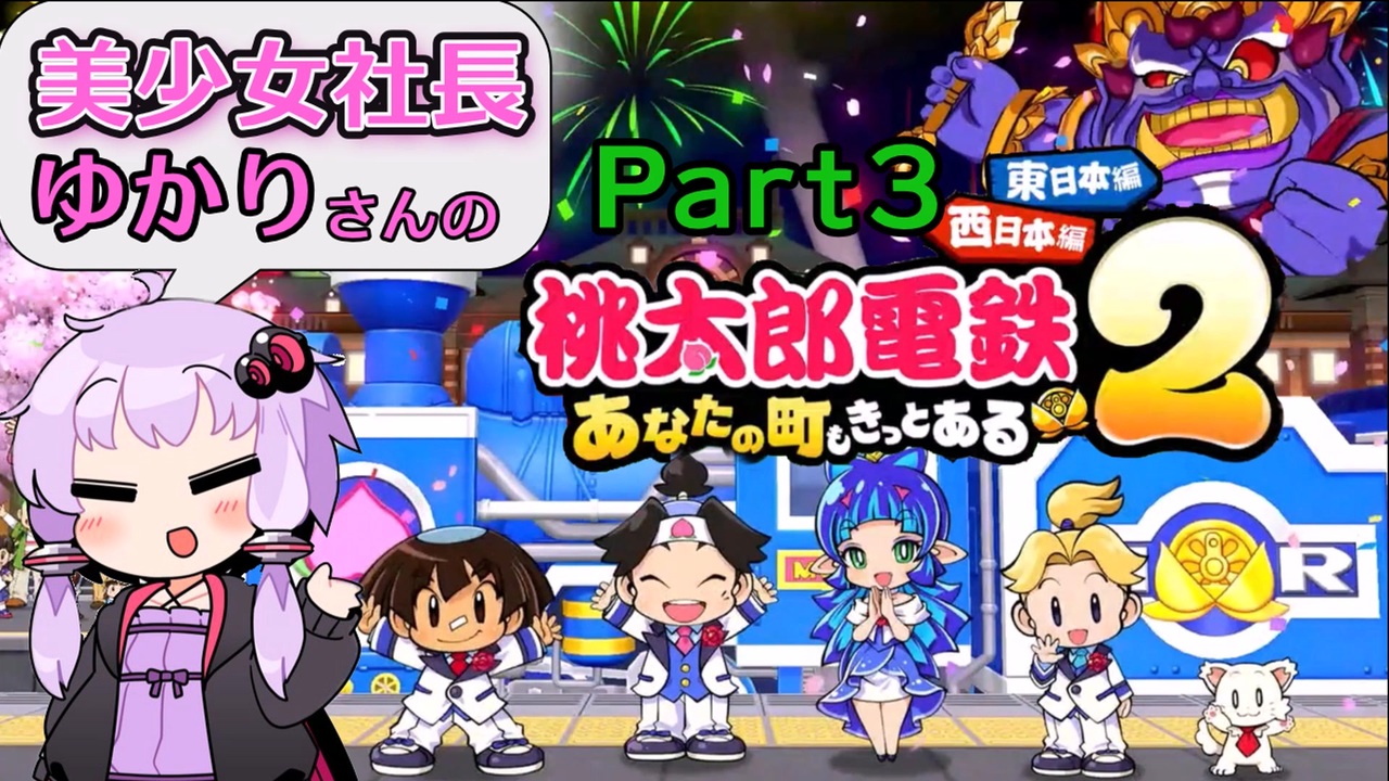 ゆかりさんが桃鉄新作で社長に就任しました。<br>桃太郎電鉄2~あなたの町も、きっとある~を3年決戦で東日本編で遊んでいきます。<br>桃鉄動画の大先輩にいましたね、さくまらしさのカケラもない〇くまってヤツが。<br><br>本体:Nintendo Switch2<br>立ち絵:結月ゆかり、紲星あかり:ini様<br>編集:YMM4<br>枝豆背景:<a href="https://commons.nicovideo.jp/works/nc224632" target="_blank" rel="noopener">nc224632</a><br>BGM:<a href="https://commons.nicovideo.jp/works/nc417426" target="_blank" rel="noopener">nc417426</a><br><br>前:<a href="https://www.nicovideo.jp/watch/sm45702466" class="watch">sm45702466</a><br><br>桃鉄2マイリスト:my/<a href="https://www.nicovideo.jp/mylist/79044002" target="_blank" rel="noopener">mylist/79044002</a><br><br>他シリーズ<br>VS.マリオマイリスト:<a href="https://www.nicovideo.jp/mylist/78965653" target="_blank" rel="noopener">mylist/78965653</a><br>がんばれゴエモン2マイリスト:<a href="https://www.nicovideo.jp/mylist/77305126" target="_blank" rel="noopener">mylist/77305126</a><br>桃鉄12ハンデ戦:<a href="https://www.nicovideo.jp/mylist/77175521" target="_blank" rel="noopener">mylist/77175521</a><br>ロックマン4:<a href="https://www.nicovideo.jp/mylist/76848069" target="_blank" rel="noopener">mylist/76848069</a><br>大魔界村:<a href="https://www.nicovideo.jp/mylist/75939295" target="_blank" rel="noopener">mylist/75939295</a><br>悪魔城ドラキュラ:<a href="https://www.nicovideo.jp/mylist/75476608" target="_blank" rel="noopener">mylist/75476608</a><br>がんばれゴエモン:<a href="https://www.nicovideo.jp/mylist/74012790" target="_blank" rel="noopener">mylist/74012790</a><br>ロックマン6:<a href="https://www.nicovideo.jp/mylist/73091196" target="_blank" rel="noopener">mylist/73091196</a><br>ロックマン2:<a href="https://www.nicovideo.jp/mylist/72171517" target="_blank" rel="noopener">mylist/72171517</a><br>Part1&単発:<a href="https://www.nicovideo.jp/mylist/72473129" target="_blank" rel="noopener">mylist/72473129</a><br><br>Twitter:<a href="https://twitter.com/halu_halu_99" target="_blank" rel="noopener nofollow">https://twitter.com/halu_halu_99</a>