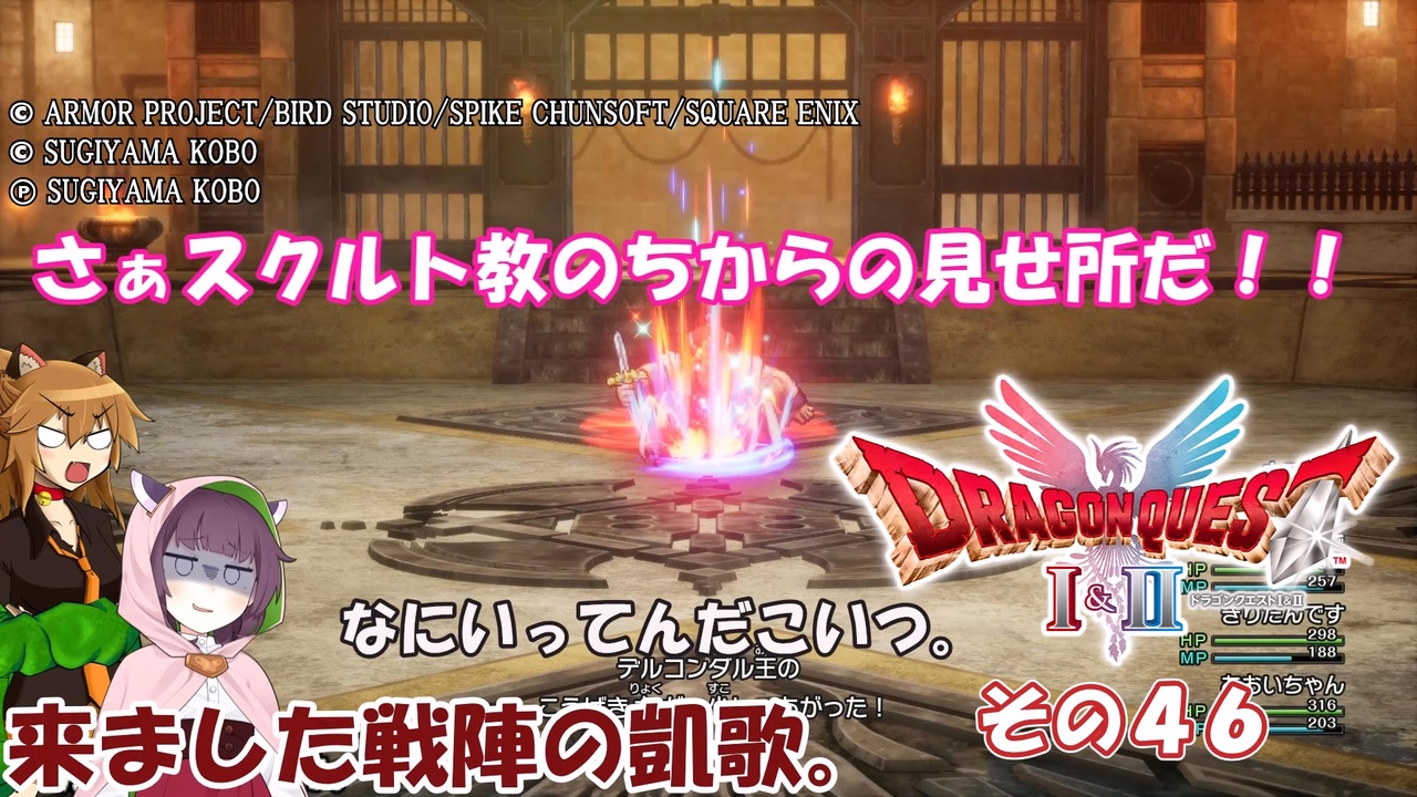 この動画はドラゴンクエストI&II<br>の実況プレイ動画となります。<br><br><br>難易度:いばらの道だぜ!<br><br>ネコ耳縛り?知らない子ですね・・・。<br><br><span style="font-size: 18px;"><strong>※シナリオに関わるネタバレあり。ご注意ください。</strong></span><br>(動画投稿ガイドラインより)<br><br>この動画で利用している株式会社スクウェア・エニックスを代表とする共同著作者が権利を所有する著作物及びスギヤマ工房有限会社が権利を所有する楽曲の転載・配布は禁止いたします。<br>© ARMOR PROJECT/BIRD STUDIO/SPIKE CHUNSOFT/SQUARE ENIX<br>© SUGIYAMA KOBO<br>℗ SUGIYAMA KOBO<br><br><a href="https://www.nicovideo.jp/watch/sm45730494" class="watch">sm45730494</a> ← 前 次 → <a href="https://www.nicovideo.jp/watch/sm45736690" class="watch">sm45736690</a><br>ドラクエ1→ <a href="https://www.nicovideo.jp/watch/sm45572733" class="watch">sm45572733</a><br>マイリスト → <a href="https://www.nicovideo.jp/mylist/77305494" target="_blank" rel="noopener">mylist/77305494</a><br>その1リスト → <a href="https://www.nicovideo.jp/mylist/58364125" target="_blank" rel="noopener">mylist/58364125</a><br><br>※使用Voice(及び配役)<br>VOICEVOX:春日部つむぎ(ネコ耳) 東北きりたん(きりたん)<br>立ち絵:ネコ耳(470/43様より頂きました)<br>Voiceroid:東北きりたん(立ち絵:このりEX様作 東北きりたん立ち絵素材5 <a href="https://seiga.nicovideo.jp/seiga/im10819054" target="_blank" rel="noopener">im10819054</a>)<br> 琴葉茜(立ち絵:ぴぴ様作 琴葉の茜ちゃん立ち絵 <a href="https://seiga.nicovideo.jp/seiga/im11484646" target="_blank" rel="noopener">im11484646</a>)<br> 琴葉葵(立ち絵:ぴぴ様作 琴葉の葵ちゃん立ち絵 <a href="https://seiga.nicovideo.jp/seiga/im11483449" target="_blank" rel="noopener">im11483449</a>)