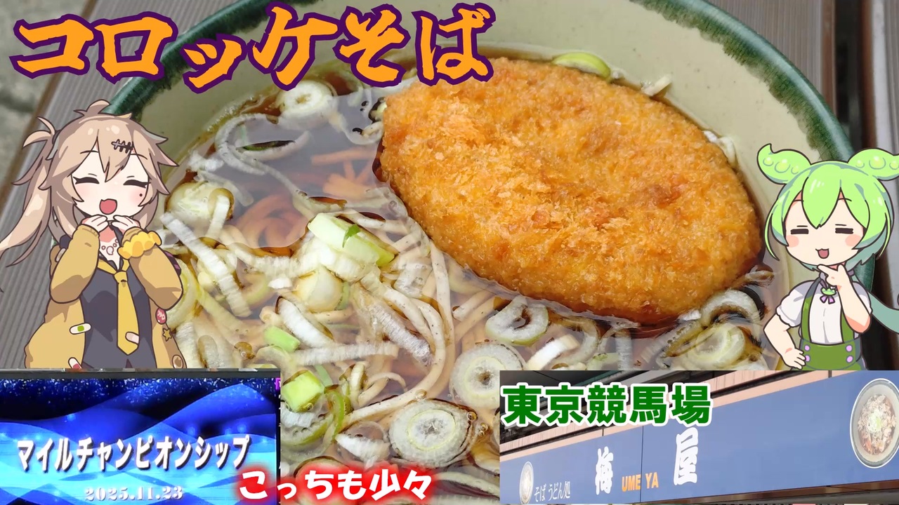 東京競馬場の近くにはそば屋があります。<br>しかし、2026年2月に閉店してしまいます<br><br>寒空の下で食べるコロッケそばは美味かったな~<br><br>そして、マイルチャンピオンシップの結果発表!<br>こちらはまぁ、サラッと<br><br>以下、コメント返信<br><br>●東京競馬場 朝限定メニュー 神田川の朝キジ定食<br><a href="https://www.nicovideo.jp/watch/sm45716775" target="_blank" rel="noopener nofollow">https://www.nicovideo.jp/watch/sm45716775</a><br>00:11<br>あら可愛い子時間によってはこんな近距離で見れるのか<br>>だいたい9時15分までなので、お早めに<br><br>●お借りした素材<br>VOICEVOX:ずんだもん<br>VOICEVOX:春日部つむぎ<br><br>・坂本アヒル様<br>・まぺん様<br><br>・ニコニ・コモンズ<br><a href="https://commons.nicovideo.jp/" target="_blank" rel="noopener nofollow">https://commons.nicovideo.jp/</a><br><br>・いらすとや<br><a href="https://www.irasutoya.com/" target="_blank" rel="noopener nofollow">https://www.irasutoya.com/</a><br><br>・イラストAC<br><a href="https://www.ac-illust.com/" target="_blank" rel="noopener nofollow">https://www.ac-illust.com/</a><br><br>・フォトAC<br><a href="https://www.photo-ac.com/" target="_blank" rel="noopener nofollow">https://www.photo-ac.com/</a><br><br>・OKUMONO<br><a href="https://sozaino.site/" target="_blank" rel="noopener nofollow">https://sozaino.site/</a><br><br>・AIPICT<br><a href="https://aipict.com/" target="_blank" rel="noopener nofollow">https://aipict.com/</a><br><br>・BGMer(ビージーエマー)<br><a href="https://bgmer.net/" target="_blank" rel="noopener nofollow">https://bgmer.net/</a><br><br>・甘茶の音楽工房<br><a href="https://amachamusic.chagasi.com/" target="_blank" rel="noopener nofollow">https://amachamusic.chagasi.com/</a><br><br>・効果音ラボ<br><a href="https://soundeffect-lab.info/" target="_blank" rel="noopener nofollow">https://soundeffect-lab.info/</a><br><br>・スプリンギン<br><a href="https://www.springin.org/sound-stock/category/life/" target="_blank" rel="noopener nofollow">https://www.springin.org/sound-stock/category/life/</a><br><br>・red bears<br><a href="https://www.nakano-sound.com/" target="_blank" rel="noopener nofollow">https://www.nakano-sound.com/</a><br><br>・DOVA-SYNDROME<br><a href="https://dova-s.jp/" target="_blank" rel="noopener nofollow">https://dova-s.jp/</a><br><br>・無料効果音で遊ぼう!<br><a href="https://taira-komori.net/" target="_blank" rel="noopener nofollow">https://taira-komori.net/</a>
