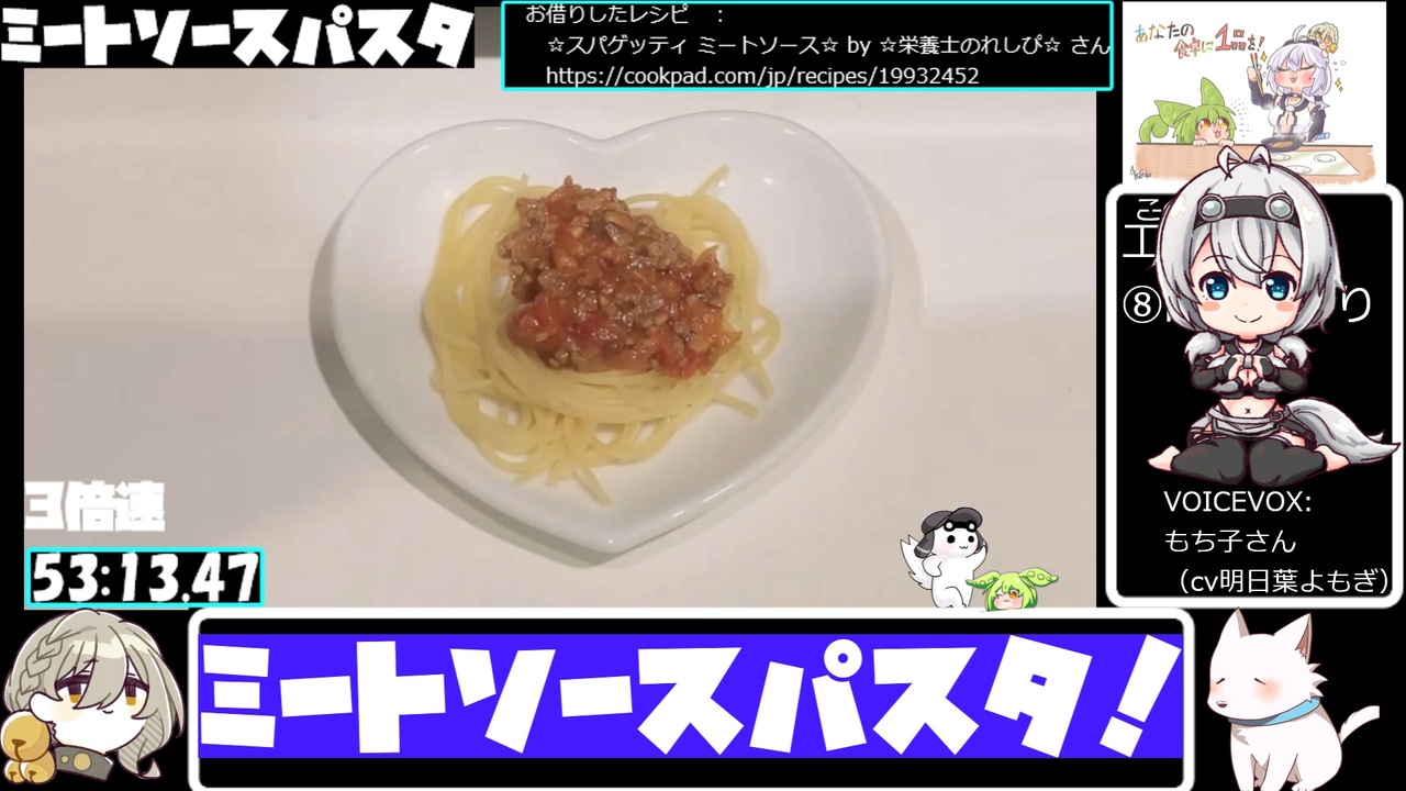 料理初心者が久々に作る料理にチャレンジします!<br><br>参考にしたレシピはこちら<br> ☆スパゲッティ ミートソース☆ by ☆栄養士のれしぴ☆ さん<br> <a href="https://cookpad.com/jp/recipes/19932452" target="_blank" rel="noopener nofollow">https://cookpad.com/jp/recipes/19932452</a><br><br>本動画は以下の投稿祭に参加しています。<br> 【投稿祭開催告知】セカイのパスタ博覧会【25/12/19~12/21】 by サンセット さん<br> <a href="https://www.nicovideo.jp/watch/sm45373922" target="_blank" rel="noopener nofollow">https://www.nicovideo.jp/watch/sm45373922</a><br /><br>編集に使用させていただいているものは、プロフィールみてね!<br><a href="https://www.nicovideo.jp/user/311366" target="_blank" rel="noopener nofollow">https://www.nicovideo.jp/user/311366</a><br><br>読み上げ:VOICEVOX もち子(cv明日葉よもぎ)、ずんだもん、四国めたん、青山龍星、WhiteCUL、伊織弓鶴、COEIROINK:猫米茶<br><br><strong>過去の動画にコメント、いいね!、ギフト、広告、フォロー、マイリストありがとうございました!</strong><br><br>とり料理祭ありがとうございました!<br>2023参加作品はこちら ⇒ <a href="https://www.nicovideo.jp/mylist/75430531" target="_blank" rel="noopener nofollow">https://www.nicovideo.jp/mylist/75430531</a><br>2024冬参加作品はこちら ⇒ <a href="https://www.nicovideo.jp/mylist/75862737" target="_blank" rel="noopener nofollow">https://www.nicovideo.jp/mylist/75862737</a><br>2024夏参加作品はこちら ⇒ <a href="https://www.nicovideo.jp/mylist/76572716" target="_blank" rel="noopener nofollow">https://www.nicovideo.jp/mylist/76572716</a><br>2025冬参加作品はこちら ⇒ <a href="https://www.nicovideo.jp/mylist/77171241" target="_blank" rel="noopener nofollow">https://www.nicovideo.jp/mylist/77171241</a><br>2025夏参加作品はこちら ⇒ <a href="https://www.nicovideo.jp/mylist/77600849" target="_blank" rel="noopener nofollow">https://www.nicovideo.jp/mylist/77600849</a><br><br>このその日ごとになんか出す定食屋か駄菓子屋のごとき動画を継続して投稿するために<br>スポンサーをひっそり募集しております、あなたも一口いかが?<br><a href="https://creator-support.nicovideo.jp/registration/311366" target="_blank" rel="noopener nofollow">https://creator-support.nicovideo.jp/registration/311366</a>