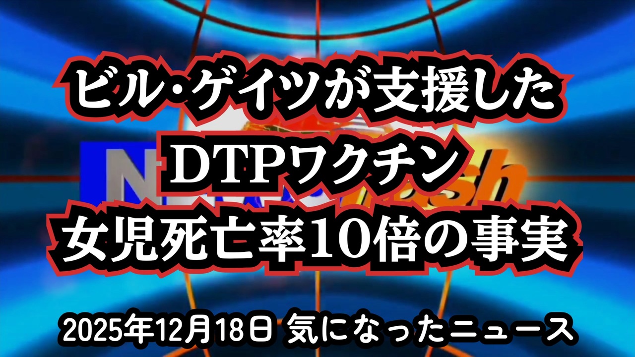 ◆ビル・ゲイツが支援したDTPワクチン 30年後に判明した“女児死亡率10倍”の事実<br><br>――――――――――<br>あらすじ<br>――――――――――<br>世界で最も広く使われてきたDTPワクチン。<br>その接種プログラムを、ビル・ゲイツは「3,000万人の命を救った」として強く支援してきました。<br>しかし、その主張に対し、デンマーク政府がデータの提示を求めたところ、十分な根拠は示されませんでした。<br><br>そこでデンマーク政府は、アフリカで30年分のDTP接種データを独自に検証。<br>その結果、ワクチンを接種した女児の死亡率が、未接種の女児より著しく高いという、見過ごされてきた事実が浮かび上がります。<br>死因はワクチンの対象疾患ではなく、マラリアや肺炎など別の病気でした。<br><br>◆今回の台本&詳細<a href="https://keiichiro8140.hatenablog.com/entry/25121888222" target="_blank" rel="noopener nofollow">https://keiichiro8140.hatenablog.com/entry/25121888222</a><br><br>◆これまでの動画<a href="https://x.gd/sPXoJ" target="_blank" rel="noopener nofollow">https://x.gd/sPXoJ</a><br><br>◆もしも(BAN)の時のためのマイリンク集<a href="https://lit.link/K-16_News44" target="_blank" rel="noopener nofollow">https://lit.link/K-16_News44</a><br><br>DTPワクチン<br>百日咳ワクチン<br>ワクチン副反応<br>ワクチン問題<br>デンマーク研究<br>30年データ<br>女児死亡率<br>免疫への影響<br>ビル・ゲイツ<br>ロバート・ケネディ・ジュニア<br>RFKジュニア<br><br>ご覧いただきありがとうございます<br>m(_ _)m<br><br>気になったニュース 2025/12/18<br><br />著作権、肖像権に配慮して作成しております。<br><br>◆気になったニュースの台本!?<br>メモ代わりに作った台本をそのままあげてます<br><a href="https://keiichiro8140.hatenablog.com/." target="_blank" rel="noopener nofollow">https://keiichiro8140.hatenablog.com/.</a><br><br><br>ここからはシリーズ紹介<br><br><br>◆ ワクチン解毒・デトックス<br><a href="https://x.gd/fZweg" target="_blank" rel="noopener nofollow">https://x.gd/fZweg</a><br><br>◆ウイリアム・マキス博士のがん治療(イベルメクチン・フェンベンダゾール等)<br><a href="https://x.gd/AtFYS" target="_blank" rel="noopener nofollow">https://x.gd/AtFYS</a><br><br>◆予防接種健康被害救済制度<br><a href="https://x.gd/0xK9x" target="_blank" rel="noopener nofollow">https://x.gd/0xK9x</a><br><br>◆気になったニュース #1501~<br><br>◆ 【ショートver】気になったニュース<br><a href="https://x.gd/7MxXC" target="_blank" rel="noopener nofollow">https://x.gd/7MxXC</a><br><br>◆ 気になったニュース #1001~<br><a href="https://x.gd/Lp8gv" target="_blank" rel="noopener nofollow">https://x.gd/Lp8gv</a><br><br>◆ 気になったニュース #501~<br><a href="https://x.gd/EmbS4" target="_blank" rel="noopener nofollow">https://x.gd/EmbS4</a><br><br>◆ 気になったニュース #1~#500<br><a href="https://x.gd/uPhNb" target="_blank" rel="noopener nofollow">https://x.gd/uPhNb</a><br><br>◆ X(旧Twitter)・テレグラムで気になった情報<br><a href="https://x.gd/YG6FT" target="_blank" rel="noopener nofollow">https://x.gd/YG6FT</a><br><br>◆ 日比谷5万人パレードデ⚪生放送アーカイブ動画<br><a href="https://x.gd/3CHJv" target="_blank" rel="noopener nofollow">https://x.gd/3CHJv</a><br><br>◆日比谷5万人パレード⚪モのマイリスト作ってみました<br><a href="https://nico.ms/mylist/76828848?ref=sp_other" target="_blank" rel="noopener nofollow">https://nico.ms/mylist/76828848?ref=sp_other</a><br><br>◆3.30 令和の百姓⚪⚪<br><a href="https://www.nicovideo.jp/series/511791?ref=garage_share_other" target="_blank" rel="noopener nofollow">https://www.nicovideo.jp/series/511791?ref=garage_share_other</a><br><br>◆ 及川幸久さんの【XNEWS】シリーズ<br><a href="https://x.gd/3k78K" target="_blank" rel="noopener nofollow">https://x.gd/3k78K</a><br><br>◆これまでの動画<a href="https://x.gd/sPXoJ" target="_blank" rel="noopener nofollow">https://x.gd/sPXoJ</a><br><br>◆もしも(BAN)の時のためのマイリンク集<a href="https://lit.link/K-16_News44" target="_blank" rel="noopener nofollow">https://lit.link/K-16_News44</a><br><br>