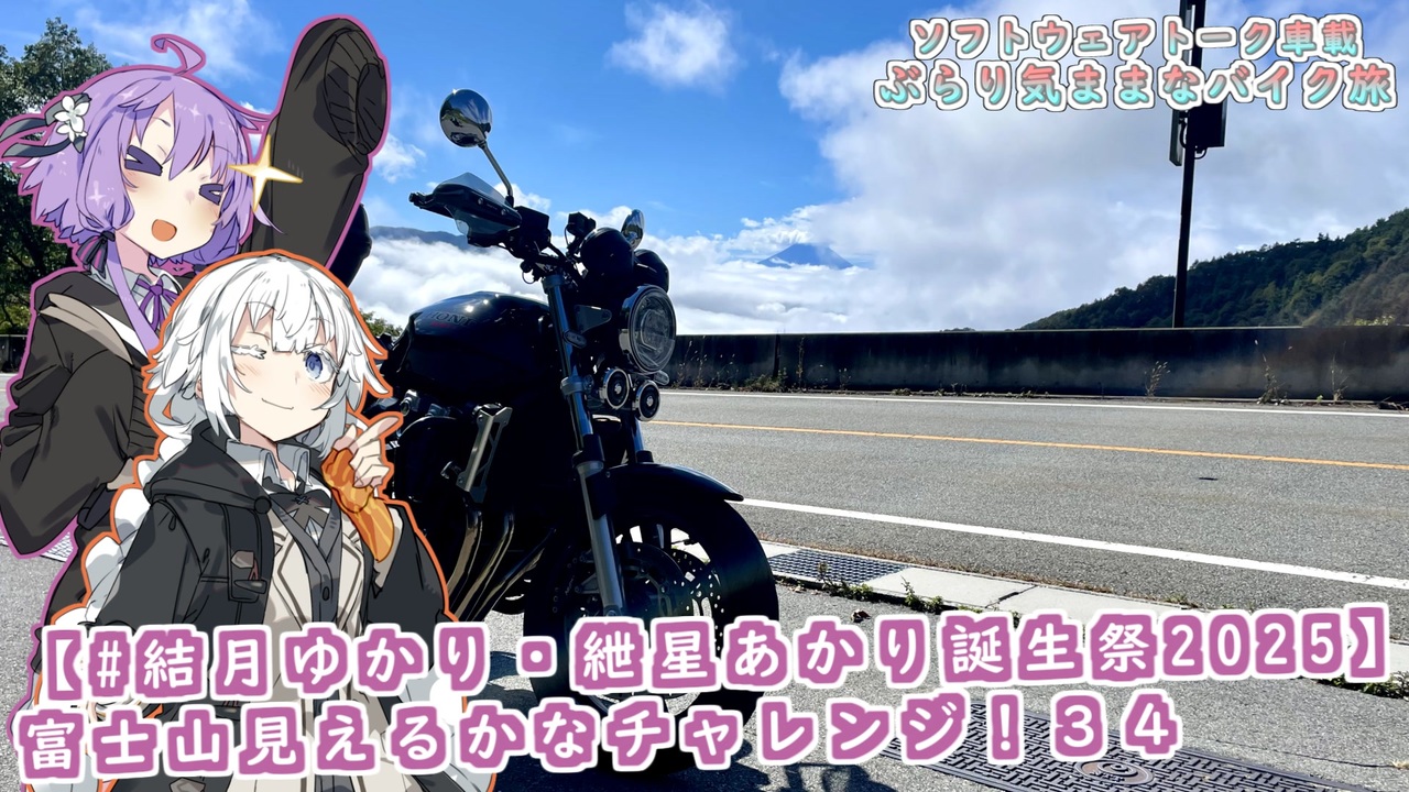 ・使用ソフト<br>AviUtl (<a href="https://seiga.nicovideo.jp/seiga/im1696493" target="_blank" rel="noopener">im1696493</a>)<br>PSDToolKit<br>VOICEROID2 結月ゆかり<br>VOICEROID2 紲星あかり<br><br>・乗り物<br>CB1300SF<br><br>・撮影機器<br>GoPro HERO11 Black CHDHX-111-FW<br><br>・立ち絵<br>「【素材】ゆかマキ制服立ち絵」からい 様 (<a href="https://seiga.nicovideo.jp/seiga/im7044532" target="_blank" rel="noopener">im7044532</a>)<br>「紲星あかり立ち絵」からい 様 (<a href="https://seiga.nicovideo.jp/seiga/im9233706" target="_blank" rel="noopener">im9233706</a>)<br><br>・BGM<br>「Morning」しゃろう 様 (<a href="https://commons.nicovideo.jp/works/nc98117" target="_blank" rel="noopener">nc98117</a>)<br>「夏色ビードロ」まんぼう二等兵 様 (<a href="https://commons.nicovideo.jp/works/nc142027" target="_blank" rel="noopener">nc142027</a>)<br>「カナリアスキップ」まんぼう二等兵 様 (<a href="https://commons.nicovideo.jp/works/nc163920" target="_blank" rel="noopener">nc163920</a>)<br><br>OP&シーンチェンジ<br><br>・乗り物<br>CB250R<br><br>・立ち絵<br>「琴葉姉妹の立ち絵素材」ユメのオワリ 様 (<a href="https://seiga.nicovideo.jp/seiga/im10706241" target="_blank" rel="noopener">im10706241</a>)<br>「鳴花ヒメ非公式立ち絵素材」△○□×(みわしいば)様 (<a href="https://seiga.nicovideo.jp/seiga/im11545076" target="_blank" rel="noopener">im11545076</a>)<br>「鳴花ミコト非公式立ち絵素材」△○□×(みわしいば)様 (<a href="https://seiga.nicovideo.jp/seiga/im11545077" target="_blank" rel="noopener">im11545077</a>)<br>「東北きりたん座り絵素材」ユメのオワリ 様 (<a href="https://seiga.nicovideo.jp/seiga/im10696341" target="_blank" rel="noopener">im10696341</a>)<br>「【サウナ動画投稿祭】音街ウナちゃん立ち絵素材」ユメのオワリ 様 (<a href="https://seiga.nicovideo.jp/seiga/im10911239" target="_blank" rel="noopener">im10911239</a>)<br>「【素材】ゆかマキ制服立ち絵」からい 様 (<a href="https://seiga.nicovideo.jp/seiga/im7044532" target="_blank" rel="noopener">im7044532</a>)<br>「紲星あかり立ち絵」からい 様 (<a href="https://seiga.nicovideo.jp/seiga/im9233706" target="_blank" rel="noopener">im9233706</a>)<br>「ついなちゃん立ち絵素材私服セット」こーすけさんたまりあ 様 (<a href="https://seiga.nicovideo.jp/seiga/im9773679" target="_blank" rel="noopener">im9773679</a>)<br>「東北ずん子 立ち絵素材」桧野 拓海 様 (<a href="https://seiga.nicovideo.jp/seiga/im11296930" target="_blank" rel="noopener">im11296930</a>)<br>「さとうささら立ち絵」kulori 様 (<a href="https://seiga.nicovideo.jp/seiga/im10790449" target="_blank" rel="noopener">im10790449</a>)<br>「すずきつづみ立ち絵」kulori 様 (<a href="https://seiga.nicovideo.jp/seiga/im10700666" target="_blank" rel="noopener">im10700666</a>)<br>「IAさん立ち絵素材」MtU 様 (<a href="https://seiga.nicovideo.jp/seiga/im8057131" target="_blank" rel="noopener">im8057131</a>)<br>「OИEさん立ち絵素材」MtU 様 (<a href="https://seiga.nicovideo.jp/seiga/im8068157" target="_blank" rel="noopener">im8068157</a>)<br>「双葉湊音の立ち絵素材」ユメのオワリ 様 (<a href="https://seiga.nicovideo.jp/seiga/im11367930" target="_blank" rel="noopener">im11367930</a>)<br>「紡乃世詩音立ち絵素材集_2025」ユメのオワリ 様<br>「花隈千冬立ち絵素材」ユメのオワリ 様 (<a href="https://seiga.nicovideo.jp/seiga/im11047388" target="_blank" rel="noopener">im11047388</a>)<br>「【素材】宮舞モカ立ち絵」からい 様 (<a href="https://seiga.nicovideo.jp/seiga/im11390154" target="_blank" rel="noopener">im11390154</a>)<br>「ほんわかフィーちゃん立ち絵素材」いかるが 様 (<a href="https://seiga.nicovideo.jp/seiga/im10858158" target="_blank" rel="noopener">im10858158</a>)<br>「口のない結月ゆかり・紲星あかり立ち絵素材」空どうふ 様 (<a href="https://seiga.nicovideo.jp/seiga/im10887187" target="_blank" rel="noopener">im10887187</a>)<br><br>・BGM<br>「晴色カレイドスコープ」まんぼう二等兵 様 (<a href="https://commons.nicovideo.jp/works/nc328326" target="_blank" rel="noopener">nc328326</a>)<br>「さんさん日和」まんぼう二等兵 様 (<a href="https://commons.nicovideo.jp/works/nc125532" target="_blank" rel="noopener">nc125532</a>)