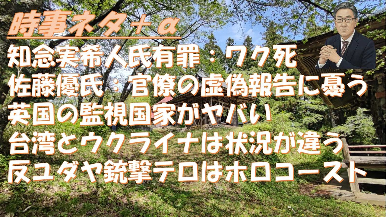 2025.12.17 コロナワクチンご遺族の代表 鵜川和久<br>著名な医師であり作家の知念実希人を刑事告訴。彼に有罪判決が下った。<br>知念実希人を絶対に許さないという思いだった<br><br><br><br><br>SATORISM TV LIVE213-2 本編「反ユダヤ銃撃テロはホロコーストである」<br><br>◆和田秀樹<br>『体力がない人の仕事の戦略』自分のエネルギーを賢く配分!<br><br>◆すずぽん<br>都民のお金で生理痛体験マシーンの件について少し話します<br><br><br><br>🆕佐藤優 鈴木宗男 🎙️【佐藤優、師走の大地塾でインテリジェンスが怒涛の発動。外務省の優秀な外交官達は日本を救えるのか】令和7年12月17日<br>・今回高市首相を批判しない、守らなければならない<br>・深刻な話をしなければ<br>・レーダー照射<br>・深夜2時:小泉防衛相の発表<br>・30分逃げなかったのはおかしい<br>・自衛隊、大臣、総理に間違った情報があげる、分かっても言わない、分かっていないのにいう<br>・官僚が自分たちの方向に誘導するため事実に基づかないことを報告する<br>いけないこと<br>・高市総理はこのことを批判していないのは正確な情報を総理に入れている人がいると思われる。<br>・事実ベースで話していかないといけない<br>・生成AIがバランス取れてきた「鈴木宗男はロシアのスパイと言う噂があるが」<br>・非核三原則、軽々に変えない方が良い:今の状態(防衛省官僚が正確に伝えない可能性)<br>・今の状況で撤回するべきではない<br>・外務省と朝日新聞(似た者同士?リークを朝日にする)<br>鈴木宗男はロシアのスパイである、というのは本当<br>・チャットGPTの答えは良し<br>・ジェミニは偏りあり<br>佐藤優:生成AIの精度は上がっている。<br><br>◆カナダ人ニュース<br>12.17 ヤバすぎるでしょ。この国はどこに向かうのか…<br><br>「ウクライナ戦争とは違い台湾有事は難易度が高い」ジョン・ミアシャイマー教授【THE CORE FORUM2025冬】【逐次通訳入り】【及川幸久】【神谷宗幣】<br><br><br>イーロン:「稼いだものに課税され、買ったものにも課税され、所有物にも課税される。<br><br>米財務省、「サハリン2」の原油販売許可延長 来年6月まで<br><br>••2025.12.18リチャード・コシミズ・チャンネル第119回<br>••マイナカード(デジタルID)のスマホ搭載で、国民のデジタル監視が完成。CBDC+顔認証+社会信用スコアの導入で、国民は従順な奴隷に。逆らえば、ホームレス。<br><br>千葉・鴨川のメガソーラー 新たに11カ所の違反森林伐採が判明