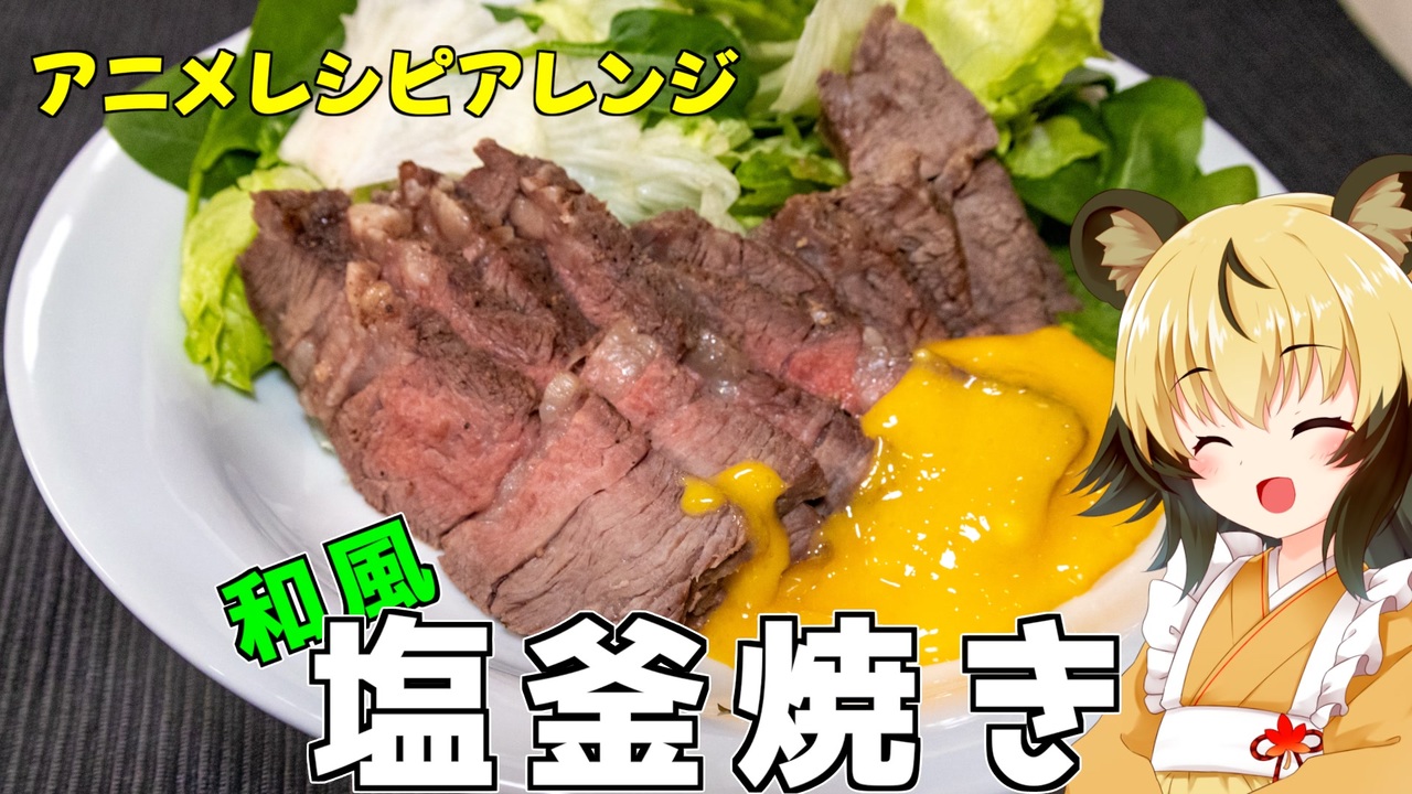 とんでもスキルで異世界放浪メシ二も飯テロがやばいです!!<br><br>今回はそこで出てきたレシピの和風アレンジです!<br>参考:<a href="https://cookpad.com/jp/recipes/25229995" target="_blank" rel="noopener nofollow">https://cookpad.com/jp/recipes/25229995</a><br><br>お肉の脂や臭みを感じさせない、そんな和風アレンジをお楽しみください<br><br>一期アレンジ:<a href="https://www.nicovideo.jp/watch/sm41839551" class="watch">sm41839551</a><br><br>■材料<br>・牛肉ブロック 500g<br>・卵白 2個分<br>・塩 1000g<br>・こしょう 適量<br>・おろしニンニク 適量<br>・山椒の実 適量<br>・昆布 適量<br>・レタス 必要に応じて<br><br>ソース<br>・卵黄 2個分<br>・塩 小さじ1/2<br>・砂糖 小さじ2<br>・みりん 大さじ2<br>・お酢 大さじ2<br><br><br>■所要時間<br>調理時間:40分程度(焼き工程25分)<br><br><br>ーーーーーーーーーーーーーーーー<br>音声:AI VOICE2紲星あかり<br>立ち絵:星華彩二魔さん<br>音源:DOVA-SYNDROME<br>イラスト:いらすとや<br>機材:Canon EOS R10<br>編集ソフト:Final Cut Pro<br>ーーーーーーーーーーーーーーーー<br><br>youtube:<a href="https://youtu.be/tJHxYG4OYuk?si=A6uaRGWUf6tjaVLZ" target="_blank" rel="noopener nofollow">https://youtu.be/tJHxYG4OYuk?si=A6uaRGWUf6tjaVLZ</a><br>X(旧:twitter):@lycaon_kitchen<br><br>りおんの和風喫茶:<a href="https://www.nicovideo.jp/series/77190" target="_blank" rel="noopener">series/77190</a><br>おつかれごはん:<a href="https://www.nicovideo.jp/series/155690" target="_blank" rel="noopener">series/155690</a><br>手作り和菓子でちょっとひとやすみしませんか?:<a href="https://www.nicovideo.jp/series/155691" target="_blank" rel="noopener">series/155691</a>