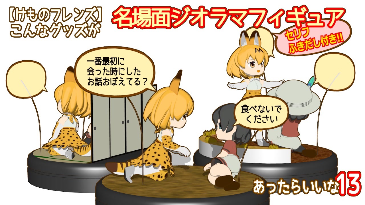 「けものフレンズ名場面ジオラマフィギュア」3シーンご用意しました!<br><br>前作「箱庭劇場「ずっけも!」第149話 あったんだ」→<a href="https://www.nicovideo.jp/watch/sm45718907" class="watch">sm45718907</a><br>次回「箱庭劇場「ずっけも!」第150話 のせている」→<a href="https://www.nicovideo.jp/watch/sm45817313" class="watch">sm45817313</a><br>マイリスト→「けものフレンズ」ミニアニメ <a href="https://www.nicovideo.jp/mylist/58467969" target="_blank" rel="noopener">mylist/58467969</a><br><br>毎回たくさんの広告、コメント、マイリスト登録、いいね、ギフト、<br>そして<strong>クリエイターサポート</strong> 本当にありがとうございます!<br><br><strong>試製ガーリバス</strong>様、ギフトありがとうございます!