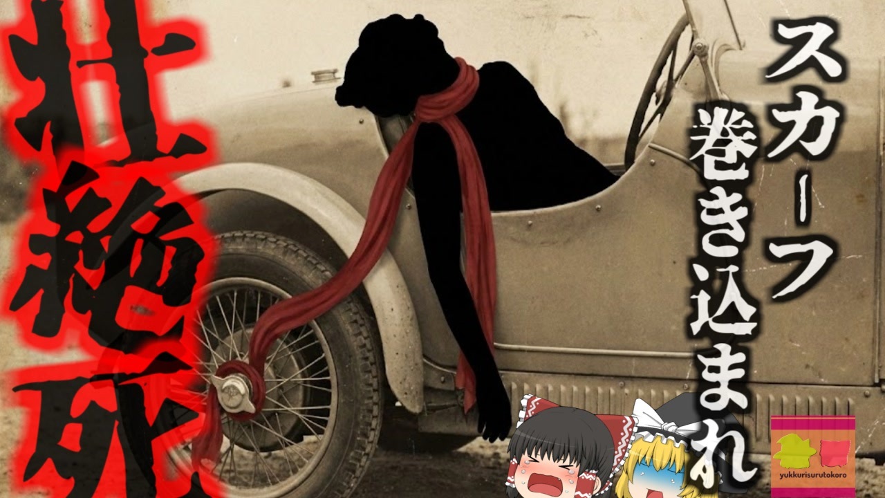 <a href="#" class="seekTime" data-seekTime="00:07" onclick="seekNicoPlayer('#00:07'); return false;">#00:07</a> 視聴上の注意<br><a href="#" class="seekTime" data-seekTime="00:51" onclick="seekNicoPlayer('#00:51'); return false;">#00:51</a> 本編開始<br><a href="#" class="seekTime" data-seekTime="1:12" onclick="seekNicoPlayer('#1:12'); return false;">#1:12</a> モダンダンスの母<br><a href="#" class="seekTime" data-seekTime="2:19" onclick="seekNicoPlayer('#2:19'); return false;">#2:19</a> 恋人とドライブ<br><a href="#" class="seekTime" data-seekTime="2:44" onclick="seekNicoPlayer('#2:44'); return false;">#2:44</a> 友人の忠告<br><a href="#" class="seekTime" data-seekTime="3:23" onclick="seekNicoPlayer('#3:23'); return false;">#3:23</a> 事故発覚の経緯<br><a href="#" class="seekTime" data-seekTime="4:51" onclick="seekNicoPlayer('#4:51'); return false;">#4:51</a> 何故こんなことに?<br><a href="#" class="seekTime" data-seekTime="9:19" onclick="seekNicoPlayer('#9:19'); return false;">#9:19</a> 波乱万丈な人生だった<br><br>引用・出展・参考文献(視聴者提供資料など<br>Wikipedia Angela Isadora Duncan<br><a href="https://x.gd/phjVd" target="_blank" rel="noopener nofollow">https://x.gd/phjVd</a><br><br />※この動画は過去の事件を知り、現在でも同じことが発生する危険性を再認識、関与しないように促すための動画であり、視聴者を扇動、動揺を誘うためのコンテンツではありません。<br><br>ご要望にお応えして、メンバーシップの開設を行いました。<br>下記URLからも登録可能ですので、ご興味がある方は是非ご参加ください。<br><a href="https://www.youtube.com/channel/UCcT5a1J7XJW7CLYI2RKl4pw/join" target="_blank" rel="noopener nofollow">https://www.youtube.com/channel/UCcT5a1J7XJW7CLYI2RKl4pw/join</a><br><br><br>Twitter<br>→<a href="https://twitter.com/yukkurisurutoko" target="_blank" rel="noopener nofollow">https://twitter.com/yukkurisurutoko</a><br><br>取り急ぎ、簡易的にですがマイリストを作りました。<br>【ゆっくり解説】事故・事件関係紹介リスト <br><a href="https://www.nicovideo.jp/mylist/71034319" target="_blank" rel="noopener nofollow">https://www.nicovideo.jp/mylist/71034319</a><br>【ゆっくり解説】放射線系事故<br><a href="https://www.nicovideo.jp/mylist/71034368" target="_blank" rel="noopener nofollow">https://www.nicovideo.jp/mylist/71034368</a><br>【ゆっくり解説】鉄道系事故・事件関連<br><a href="https://www.nicovideo.jp/mylist/71034379" target="_blank" rel="noopener nofollow">https://www.nicovideo.jp/mylist/71034379</a>