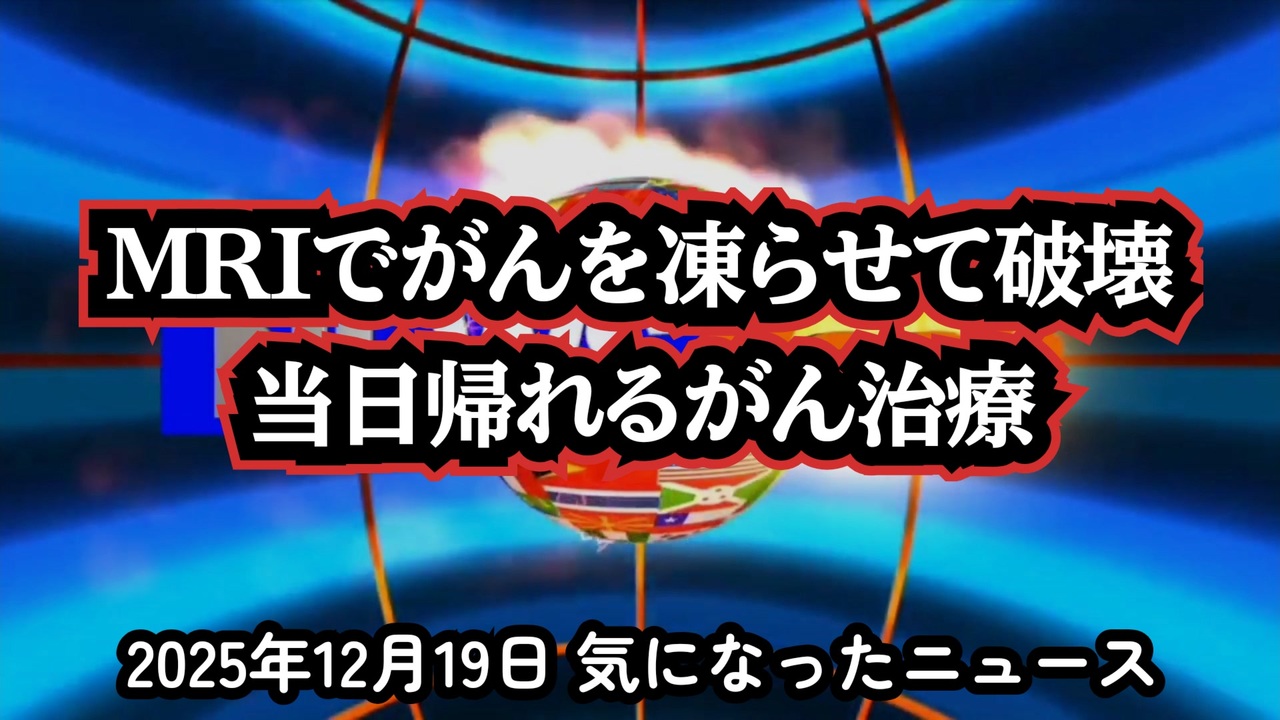 【※SFではありません】◆がんを凍らせて破壊する『MRIガイド下クライオアブレーション』【最先端がん治療】<br><br>あらすじ<br>がん治療は「切るもの」という常識が、静かに覆され始めている。<br>オーストラリア・シドニーで実際に行われているのは、リアルタイムMRIを使い、腫瘍だけを正確に凍結・破壊する『MRIガイド下クライオアブレーション』という最先端治療。メスも縫合も不要で、多くの患者が当日中に帰宅する。<br>SFのように聞こえるこの技術は、すでに公立病院で運用され、手術が困難な人々の現実的な選択肢となっている。<br>「未来の医療」は、もう始まっている。その現場を追う。<br><br>◆今回の台本&詳細<a href="https://keiichiro8140.hatenablog.com/entry/25121999111" target="_blank" rel="noopener nofollow">https://keiichiro8140.hatenablog.com/entry/25121999111</a><br><br>◆これまでの動画<a href="https://x.gd/sPXoJ" target="_blank" rel="noopener nofollow">https://x.gd/sPXoJ</a><br><br>◆もしも(BAN)の時のためのマイリンク集<a href="https://lit.link/K-16_News44" target="_blank" rel="noopener nofollow">https://lit.link/K-16_News44</a><br><br>MRIガイド下クライオアブレーション<br>切らないがん治療<br>凍結療法<br>アイスボール可視化<br>日帰りがん治療<br>シドニー<br>オーストラリア<br>最新医療<br>次世代がん治療<br>がん治療<br>メドベッド<br><br>ご覧いただきありがとうございます<br>m(_ _)m<br><br>気になったニュース 2025/12/19<br><br />著作権、肖像権に配慮して作成しております。<br><br>◆気になったニュースの台本!?<br>メモ代わりに作った台本をそのままあげてます<br><a href="https://keiichiro8140.hatenablog.com/." target="_blank" rel="noopener nofollow">https://keiichiro8140.hatenablog.com/.</a><br><br><br>ここからはシリーズ紹介<br><br><br>◆ ワクチン解毒・デトックス<br><a href="https://x.gd/fZweg" target="_blank" rel="noopener nofollow">https://x.gd/fZweg</a><br><br>◆ウイリアム・マキス博士のがん治療(イベルメクチン・フェンベンダゾール等)<br><a href="https://x.gd/AtFYS" target="_blank" rel="noopener nofollow">https://x.gd/AtFYS</a><br><br>◆予防接種健康被害救済制度<br><a href="https://x.gd/0xK9x" target="_blank" rel="noopener nofollow">https://x.gd/0xK9x</a><br><br>◆気になったニュース #1501~<br><br>◆ 【ショートver】気になったニュース<br><a href="https://x.gd/7MxXC" target="_blank" rel="noopener nofollow">https://x.gd/7MxXC</a><br><br>◆ 気になったニュース #1001~<br><a href="https://x.gd/Lp8gv" target="_blank" rel="noopener nofollow">https://x.gd/Lp8gv</a><br><br>◆ 気になったニュース #501~<br><a href="https://x.gd/EmbS4" target="_blank" rel="noopener nofollow">https://x.gd/EmbS4</a><br><br>◆ 気になったニュース #1~#500<br><a href="https://x.gd/uPhNb" target="_blank" rel="noopener nofollow">https://x.gd/uPhNb</a><br><br>◆ X(旧Twitter)・テレグラムで気になった情報<br><a href="https://x.gd/YG6FT" target="_blank" rel="noopener nofollow">https://x.gd/YG6FT</a><br><br>◆ 日比谷5万人パレードデ⚪生放送アーカイブ動画<br><a href="https://x.gd/3CHJv" target="_blank" rel="noopener nofollow">https://x.gd/3CHJv</a><br><br>◆日比谷5万人パレード⚪モのマイリスト作ってみました<br><a href="https://nico.ms/mylist/76828848?ref=sp_other" target="_blank" rel="noopener nofollow">https://nico.ms/mylist/76828848?ref=sp_other</a><br><br>◆3.30 令和の百姓⚪⚪<br><a href="https://www.nicovideo.jp/series/511791?ref=garage_share_other" target="_blank" rel="noopener nofollow">https://www.nicovideo.jp/series/511791?ref=garage_share_other</a><br><br>◆ 及川幸久さんの【XNEWS】シリーズ<br><a href="https://x.gd/3k78K" target="_blank" rel="noopener nofollow">https://x.gd/3k78K</a><br><br>◆これまでの動画<a href="https://x.gd/sPXoJ" target="_blank" rel="noopener nofollow">https://x.gd/sPXoJ</a><br><br>◆もしも(BAN)の時のためのマイリンク集<a href="https://lit.link/K-16_News44" target="_blank" rel="noopener nofollow">https://lit.link/K-16_News44</a><br><br>