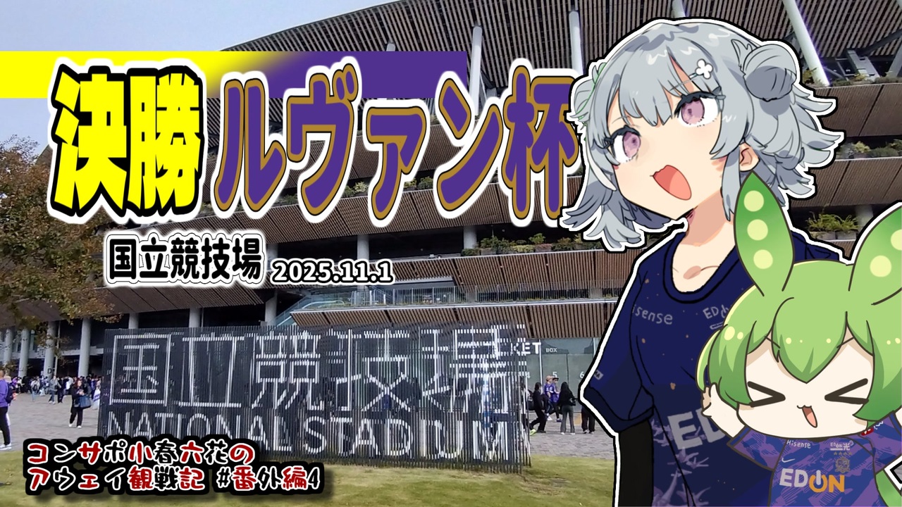2025/11/1 <br>YBCルヴァンカップ 決勝 <br>サンフレッチェ広島 vs 柏レイソル <br>国立競技場 <br><br>道外道民コンサドーレライトサポの観戦記録動画です。<br>気軽によその試合を見に行こう ← もし北海道に住んでたら出来ないんだよねこれ...<br><br>お城好きずんだもん動画シリーズ<br><a href="https://www.nicovideo.jp/user/3512241/series/314999" target="_blank" rel="noopener nofollow">https://www.nicovideo.jp/user/3512241/series/314999</a><br><br>公式ハイライト<br><a href="https://www.youtube.com/watch?v=X5mvF3hxKZ4" target="_blank" rel="noopener nofollow">https://www.youtube.com/watch?v=X5mvF3hxKZ4</a><br><br>NEXT→千葉<br><br>CeVIO AI 小春六花<br>VOICEVOX ずんだもん<br><br>【立ち絵】<br> かれい様 【素材】小春六花立ち絵(改変) <a href="https://seiga.nicovideo.jp/seiga/im10775794" target="_blank" rel="noopener">im10775794</a><br> のんたお様 のんたお式ずんだもん立ち絵_ver.2.0(改変) <a href="https://seiga.nicovideo.jp/seiga/im10857524" target="_blank" rel="noopener">im10857524</a>