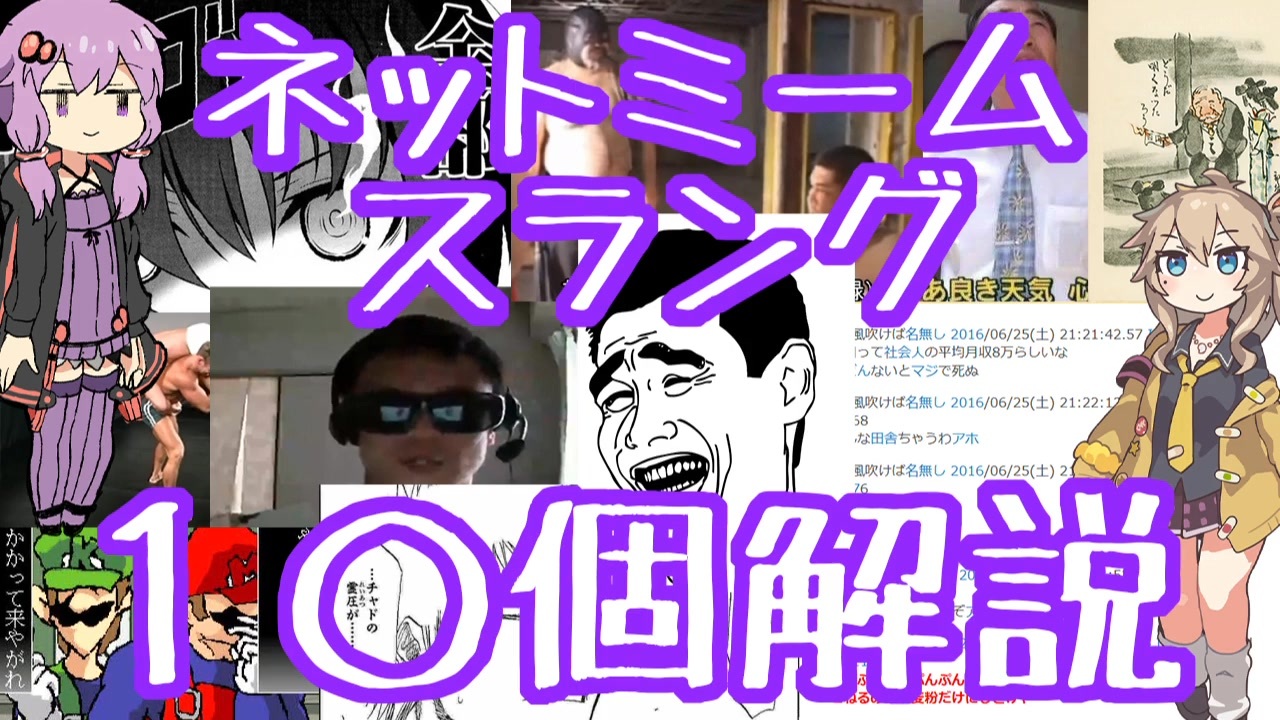 ネットでよく見かけるネタの元ネタなどを10個解説しています<br><br>ジャンプ巻末コメント並みにここのコメントが思いつかない<br><br>1.出ていけぇ<br>2.どうだ明るくなったろう<br>3.籠池構文<br>4.粉ぷんぷん<br>5.全部ゴッ倒す!!<br>6.麻雀はやる気の問題<br>7.チャドの霊圧が消えた<br>8.コイニハッテンシテ<br>9.あ、これかぁ<br>10.Yao Ming Face<br><br><br>前⇒<a href="https://www.nicovideo.jp/watch/sm45713978" class="watch">sm45713978</a><br>次⇒<a href="https://www.nicovideo.jp/watch/sm45818915" class="watch">sm45818915</a><br>番外編⇒<a href="https://www.nicovideo.jp/watch/sm45669639" class="watch">sm45669639</a><br>part1⇒<a href="https://www.nicovideo.jp/watch/sm43894948" class="watch">sm43894948</a><br>解説済みのネタ一覧⇒<a href="https://docs.google.com/spreadsheets/d/13ZNY49m_mK0AZokz-TjV85o_aGCffPzBl7MtOX9wdow/edit?gid=0#gid=0" target="_blank" rel="noopener nofollow">https://docs.google.com/spreadsheets/d/13ZNY49m_mK0AZokz-TjV85o_aGCffPzBl7MtOX9wdow/edit?gid=0#gid=0</a><br><br>VOICEROID 女3人、居酒屋にて⇒<a href="https://www.nicovideo.jp/watch/sm45684742" class="watch">sm45684742</a><br>ゆかりさんのマダミス談義⇒<a href="https://www.nicovideo.jp/series/474362" target="_blank" rel="noopener">series/474362</a><br>ふつうの軽音部ふり返り⇒<a href="https://www.nicovideo.jp/series/490000" target="_blank" rel="noopener">series/490000</a><br>結月ゆかりが好きな曲を10曲、好きに語る。⇒<a href="https://www.nicovideo.jp/series/526133" target="_blank" rel="noopener">series/526133</a><br><br><br>【お借りしたもの】<br>くのださん<br>結月ゆかり 立ち絵<br><a href="https://seiga.nicovideo.jp/seiga/im10653504" target="_blank" rel="noopener nofollow">https://seiga.nicovideo.jp/seiga/im10653504</a><br><br>坂本アヒルさん<br>春日部つむぎ立ち絵素材<br><a href="https://seiga.nicovideo.jp/seiga/im10849150" target="_blank" rel="noopener nofollow">https://seiga.nicovideo.jp/seiga/im10849150</a><br><br>苦情など⇒<a href="https://x.com/extra403" target="_blank" rel="noopener nofollow">https://x.com/extra403</a><br>ようつべ版⇒<a href="https://youtu.be/3V2UpY0fU58" target="_blank" rel="noopener nofollow">https://youtu.be/3V2UpY0fU58</a>