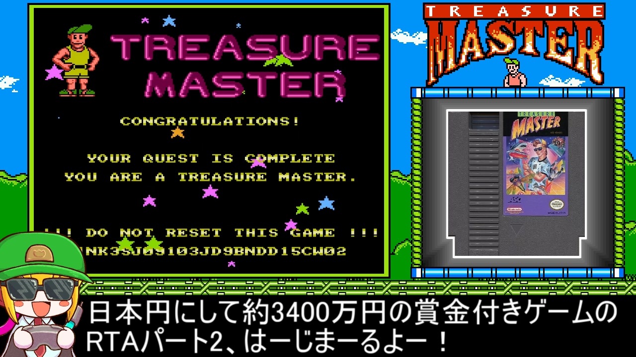 お年玉に3400万円ほしいので初投稿です。<br>サングラスはホラ・・・パッケ絵はつけてるから・・・<br><br><span style="color: #262626;">半袖・短パン・筋肉質・緑帽子・・・トレジャーマスターはジムパワー QED証明終了</span><br><br><span style="color: #ff0000; font-size: 24px;"><strong>前編→ <a href="https://www.nicovideo.jp/watch/sm45741986" class="watch">sm45741986</a></strong></span><br>自作RTA→<a href="https://www.nicovideo.jp/mylist/66567417" target="_blank" rel="noopener">mylist/66567417</a><br><br>レギュレーション<br>計測開始:主人公が操作できるようになった瞬間<br>計測終了:ゴールした瞬間<br /><br><span style="font-size: 18px;"><strong>↓</strong></span><span style="color: #ff0000; font-size: 18px;"><strong>生放送(毎日20時~24時くらい)</strong></span><br><span style="font-size: 18px;"><strong><a href="https://www.twitch.tv/yuyukichi2" target="_blank" rel="noopener nofollow">https://www.twitch.tv/yuyukichi2</a><br>↓</strong></span><span style="color: #0000ff; font-size: 18px;"><strong>ツイッター</strong></span><br><span style="font-size: 18px;"><strong><a href="https://twitter.com/YuyukichiRTA" target="_blank" rel="noopener nofollow">https://twitter.com/YuyukichiRTA</a><br>↓</strong></span><span style="color: #ff9900; font-size: 18px;"><strong>ホームページ</strong></span><br><span style="font-size: 18px;"><strong><a href="https://yuyukichirta.wixsite.com/yuyukichi" target="_blank" rel="noopener nofollow">https://yuyukichirta.wixsite.com/yuyukichi</a></strong></span>