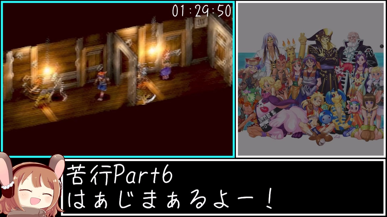 「隊長!ヤツらはキッドと合流してからストーリーを進めるようでありますな!」<br>「で、でも水龍の島には行かないみたいなんだな…?」<br>「動画内でも解説がありますが、これはチャート上必須な理由がちゃーんとありますな!」<br>「…(怒)」<br>「おっとっと…であります」<br>「…まあキッドの体調不良が回復してよかったんだな、あのままじゃ寝覚めが悪すぎたんだな」<br>「隊長のポンコツっぷり…隊長不良も是非回復してほしいところでありますな(笑)」<br>「ふん!!!!!!!!!!!!!!!!!!!!!!!!!」<br>「デコターーーーーーーーーーーーン!!!!!!!!!!!」<br><br>【このシリーズのリンク】<br>Part1:<a href="https://www.nicovideo.jp/watch/sm45629580" class="watch">sm45629580</a><br>前:<a href="https://www.nicovideo.jp/watch/sm45694646" class="watch">sm45694646</a><br>次:<a href="https://www.nicovideo.jp/watch/sm45768303" class="watch">sm45768303</a><br>マイリスト:<a href="https://www.nicovideo.jp/mylist/79017664" target="_blank" rel="noopener">mylist/79017664</a><br><br>【クロノシリーズRTAマイリスト】<br>クロスGoodEnding:<a href="https://www.nicovideo.jp/mylist/77599763" target="_blank" rel="noopener">mylist/77599763</a><br>クロスAllCharacters:<a href="https://www.nicovideo.jp/mylist/75145088" target="_blank" rel="noopener">mylist/75145088</a><br>トリガーAllEndings:<a href="https://www.nicovideo.jp/mylist/78090522" target="_blank" rel="noopener">mylist/78090522</a><br><br>【Twitch】<br><a href="https://www.twitch.tv/tomo_rta" target="_blank" rel="noopener nofollow">https://www.twitch.tv/tomo_rta</a><br><br>【Twitter】<br><a href="https://x.com/Tomo_RTA" target="_blank" rel="noopener nofollow">https://x.com/Tomo_RTA</a><br><br>【固定敵行動パターン表】<br><a href="https://drive.google.com/file/d/1hju4hcsEMiq0z5-mkneWtSzS8pygNjj2/view?usp=drive_link" target="_blank" rel="noopener nofollow">https://drive.google.com/file/d/1hju4hcsEMiq0z5-mkneWtSzS8pygNjj2/view?usp=drive_link</a><br><br>【戦闘における基礎知識】<br><a href="https://drive.google.com/file/d/1uUlmS8Fk4ungxdywBPpJXOTwvDb5Jdbh/view?usp=drive_link" target="_blank" rel="noopener nofollow">https://drive.google.com/file/d/1uUlmS8Fk4ungxdywBPpJXOTwvDb5Jdbh/view?usp=drive_link</a><br><br>【権利】<br>CHRONO CROSS<br>© SQUARE ENIX CO., LTD. All Rights Reserved.<br>Character Design: © SQUARE ENIX CO., LTD. /© NOBUTERU YUUKI All Rights Reserved.<br>RADICAL DREAMERS<br>© SQUARE ENIX CO., LTD. All Rights Reserved.