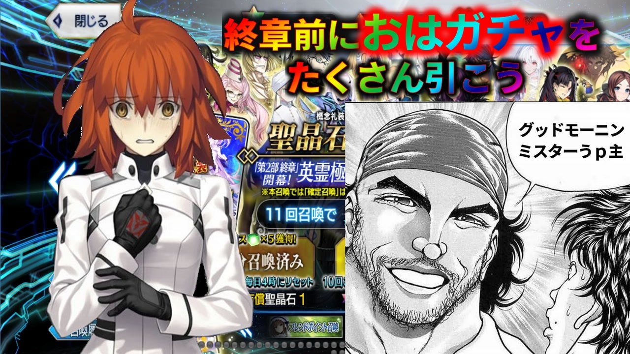 全鯖PUとかおかしいよ:(´◦ω◦`): フエェ<br>集計にミスとかあったら申し訳ない<br><br>前 ⇒ エリちゃんガチャ2 <a href="https://www.nicovideo.jp/watch/sm45631484" class="watch">sm45631484</a><br>次 ⇒ 2026年福袋 <a href="https://www.nicovideo.jp/watch/sm45800939" class="watch">sm45800939</a><br><br>FGOガチャ動画マイリスト ⇒ <a href="https://www.nicovideo.jp/mylist/57723852" target="_blank" rel="noopener">mylist/57723852</a><br>ビーナスイレブンびびっど! ⇒ <a href="https://www.nicovideo.jp/mylist/66096625" target="_blank" rel="noopener">mylist/66096625</a><br>閃乱カグラ ⇒ <a href="https://www.nicovideo.jp/mylist/57723845" target="_blank" rel="noopener">mylist/57723845</a><br>幻獣契約クリプトラクト ⇒ <a href="https://www.nicovideo.jp/mylist/66096613" target="_blank" rel="noopener">mylist/66096613</a><br>天下百剣イリヤコラボ ⇒ <a href="https://www.nicovideo.jp/watch/sm35476389" class="watch">sm35476389</a><br>