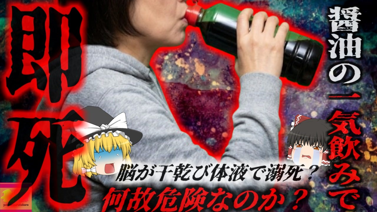 <a href="#" class="seekTime" data-seekTime="00:07" onclick="seekNicoPlayer('#00:07'); return false;">#00:07</a> 本編開始<br><a href="#" class="seekTime" data-seekTime="00:31" onclick="seekNicoPlayer('#00:31'); return false;">#00:31</a> 統合失調症だった女性<br><a href="#" class="seekTime" data-seekTime="1:30" onclick="seekNicoPlayer('#1:30'); return false;">#1:30</a> 薬の副作用と多飲症対策<br><a href="#" class="seekTime" data-seekTime="2:53" onclick="seekNicoPlayer('#2:53'); return false;">#2:53</a> 事故発生の経緯<br><a href="#" class="seekTime" data-seekTime="3:52" onclick="seekNicoPlayer('#3:52'); return false;">#3:52</a> 事故後の対応<br><a href="#" class="seekTime" data-seekTime="5:12" onclick="seekNicoPlayer('#5:12'); return false;">#5:12</a> 行為の危険性<br><a href="#" class="seekTime" data-seekTime="7:04" onclick="seekNicoPlayer('#7:04'); return false;">#7:04</a> 浸透圧とは?<br><a href="#" class="seekTime" data-seekTime="7:54" onclick="seekNicoPlayer('#7:54'); return false;">#7:54</a> Aさんの体の中で何が起きていた?<br><a href="#" class="seekTime" data-seekTime="9:25" onclick="seekNicoPlayer('#9:25'); return false;">#9:25</a> 醤油の一気飲みが何故可能だったのか?<br><a href="#" class="seekTime" data-seekTime="11:44" onclick="seekNicoPlayer('#11:44'); return false;">#11:44</a> この事故が残した教訓と影響<br><br>引用・出展・参考文献(視聴者提供資料など<br>Fatal acute hypernatremia resulting from a massive intake of seasoning soy sauce<br><a href="https://x.gd/W7WlP" target="_blank" rel="noopener nofollow">https://x.gd/W7WlP</a><br>Journal of Forensic and Legal Medicine (法医学専門誌) / 著者:Satoshi Furukawaら<br><a href="https://x.gd/OqgrL" target="_blank" rel="noopener nofollow">https://x.gd/OqgrL</a><br>高ナトリウム血症(MSDマニュアル プロフェッショナル版)<br><a href="https://x.gd/kdllE" target="_blank" rel="noopener nofollow">https://x.gd/kdllE</a><br><br />※この動画は過去の事件を知り、現在でも同じことが発生する危険性を再認識、関与しないように促すための動画であり、視聴者を扇動、動揺を誘うためのコンテンツではありません。<br><br>ご要望にお応えして、メンバーシップの開設を行いました。<br>下記URLからも登録可能ですので、ご興味がある方は是非ご参加ください。<br><a href="https://www.youtube.com/channel/UCcT5a1J7XJW7CLYI2RKl4pw/join" target="_blank" rel="noopener nofollow">https://www.youtube.com/channel/UCcT5a1J7XJW7CLYI2RKl4pw/join</a><br><br><br>Twitter<br>→<a href="https://twitter.com/yukkurisurutoko" target="_blank" rel="noopener nofollow">https://twitter.com/yukkurisurutoko</a><br><br>取り急ぎ、簡易的にですがマイリストを作りました。<br>【ゆっくり解説】事故・事件関係紹介リスト <br><a href="https://www.nicovideo.jp/mylist/71034319" target="_blank" rel="noopener nofollow">https://www.nicovideo.jp/mylist/71034319</a><br>【ゆっくり解説】放射線系事故<br><a href="https://www.nicovideo.jp/mylist/71034368" target="_blank" rel="noopener nofollow">https://www.nicovideo.jp/mylist/71034368</a><br>【ゆっくり解説】鉄道系事故・事件関連<br><a href="https://www.nicovideo.jp/mylist/71034379" target="_blank" rel="noopener nofollow">https://www.nicovideo.jp/mylist/71034379</a><br><br><a target="_blank" href="https://qa.nicovideo.jp/faq/show/19424?site_domain=default" style="font-size: 13px;color: #657586; text-decoration: underline; line-height: 1.4">この動画は投稿者によって修正されました</a>